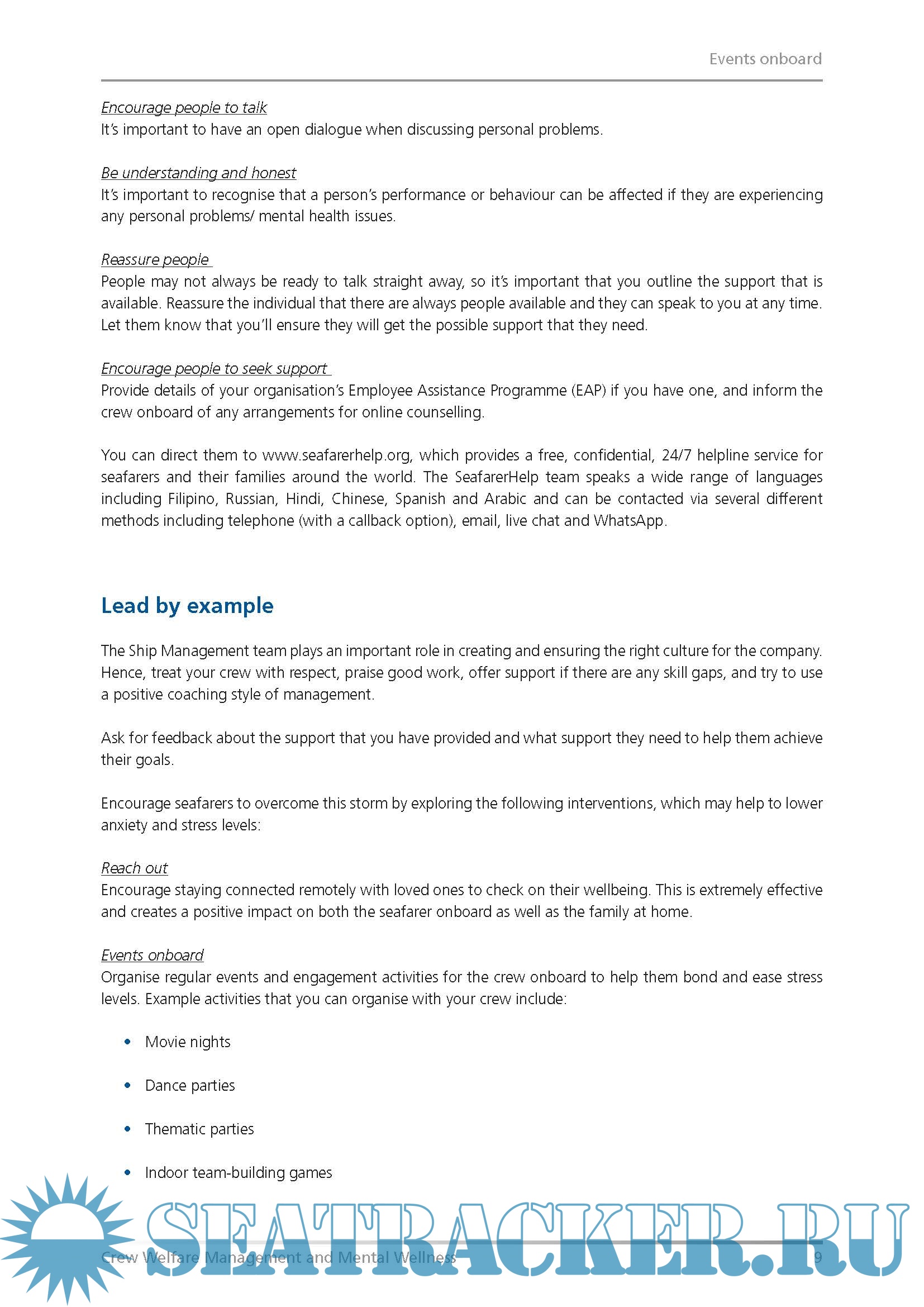 Description: The guidance includes advice on helping seafarers to deal with emotional stress and overcome negative feelings. While this guidance has been written during the Covid-19 global pandemic, the key principles are applicable at any time.