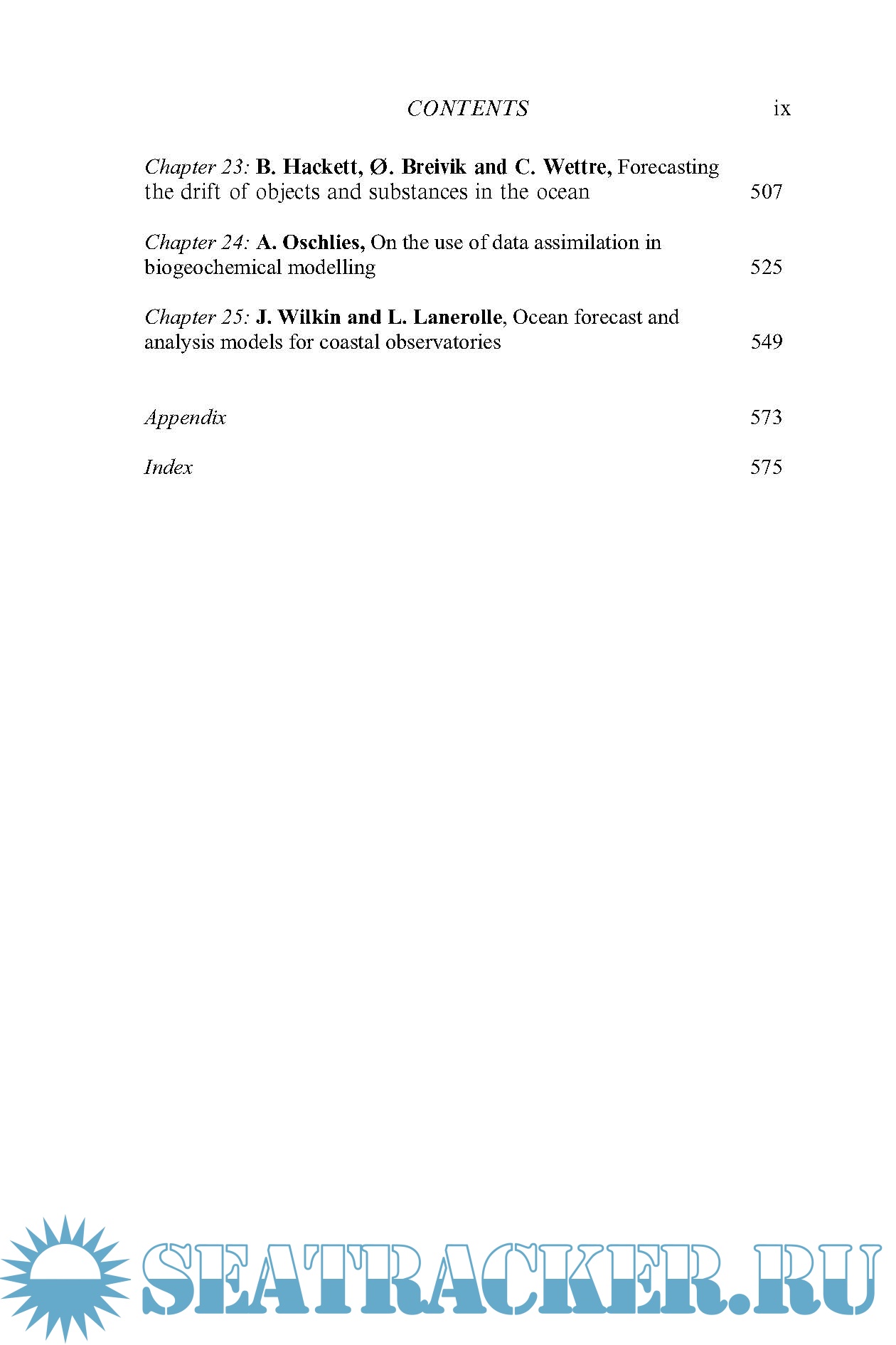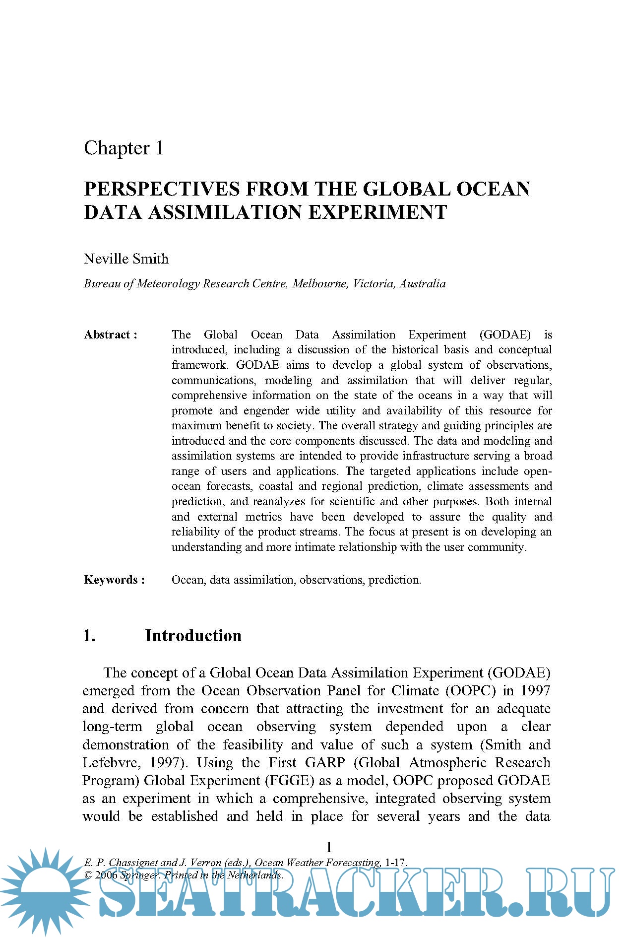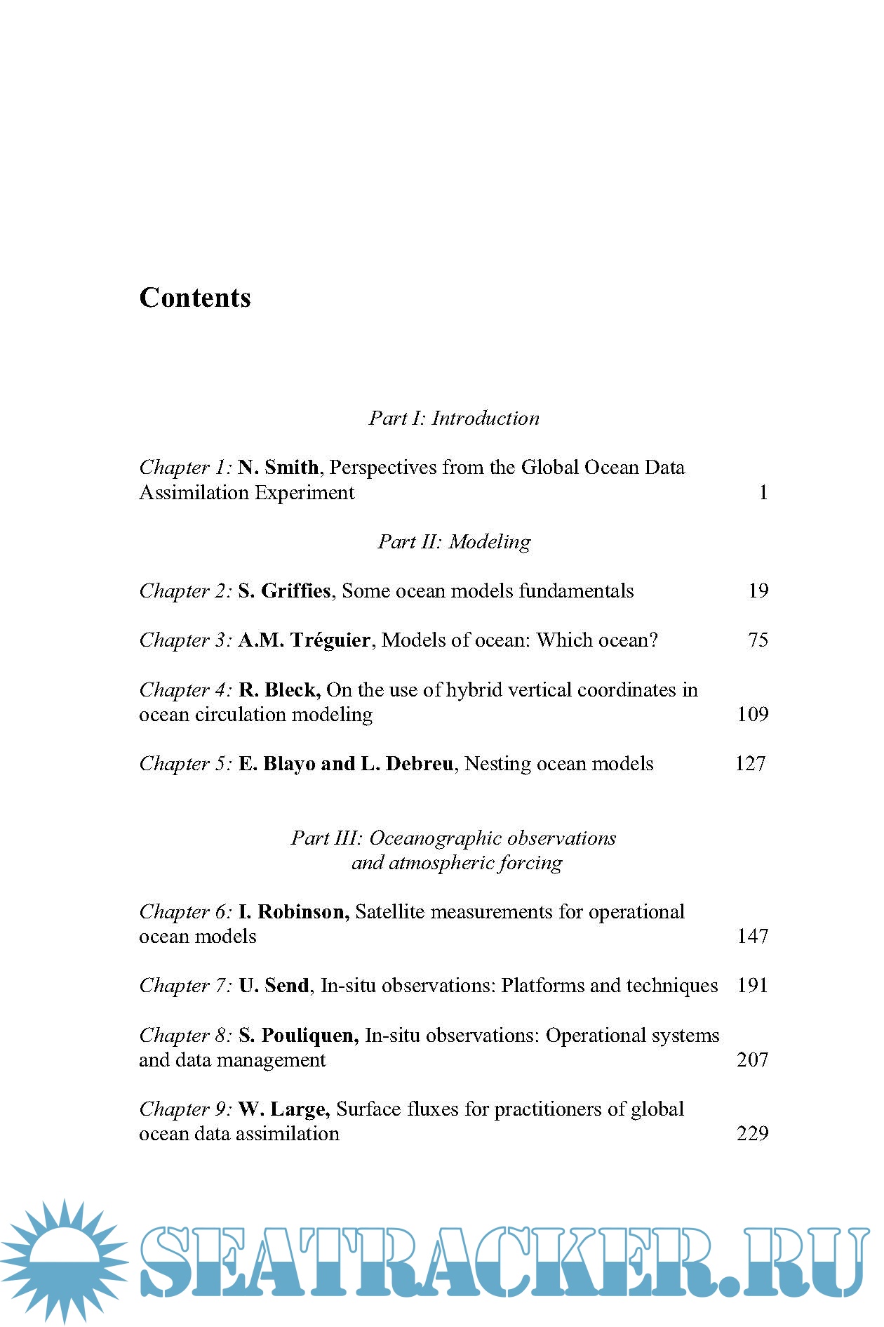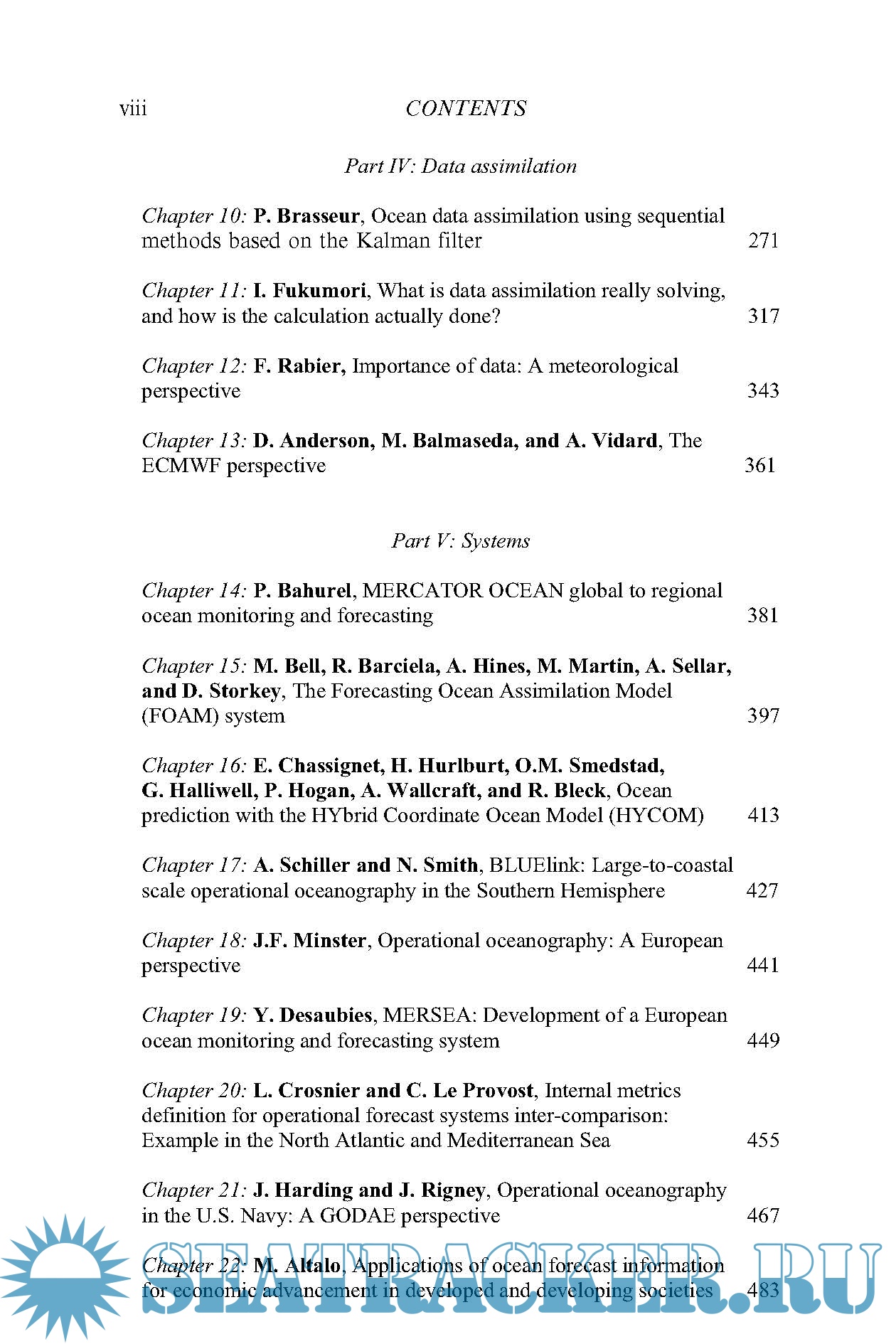 Year: 2006 Language: english Author: Eric P. Chassignet and Jacques Verron (ed.) Genre: Handbook Publisher: Springer ISBN: 978 10 1-4020-4028-8 Format: PDF Quality: eBook Pages count: 573 Description: The field of physical oceanography has matured to a point where it is now conceivable to combine numerical models and observations via data assimilation in order to provide ocean prediction products on various spatial and time scales. As a result, many nations have begun large-scale efforts to provide routine products to the oceanographic community and started to develop operational oceanography systems. The Global Ocean Data Assimilation Experiment (GODAE) provides a framework for these efforts, i.e., a global system of observations, communications, modelling, and assimilation that will deliver regular, comprehensive information on the state of the oceans, in a way that will promote and engender wide utility and availability of this resource for maximum benefit to the community. The societal benefit of this experiment will be an increased knowledge of the marine environment and ocean climate, predictive skills for societal, industrial, and commercial benefit and tactical and strategic advantage, as well as the provision of a comprehensive and integrated approach to the oceans. We therefore considered it timely, given the international context, to bring together leading scientists, system developers, and application providers to present an integrated view of oceanography. The chapters collected in this volume cover a wide range of topics and summarize our present knowledge in ocean modelling, ocean observing systems, and data assimilation.