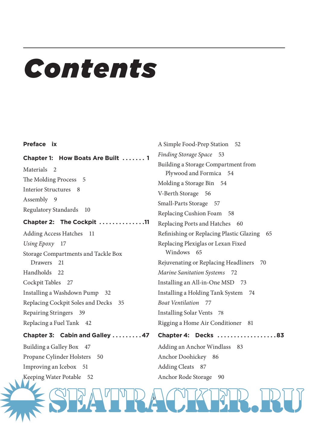 Year: 2009 Language: english Author: Esterle P. Genre: Manual Publisher: International Marine/McGraw-Hil ISBN: 0071549358 Format: PDF Quality: eBook Pages count: 305 Description: Dozens of DIY projects to keep your boat looking good and running well This wide-ranging projects book covers maintenance, repairs, and upgrades to improve comfort, utility, appearance, value, safety, and enjoyment of powerboats up to 35 feet long. Projects include standard maintenance like changing engine oil and preparing for winter storage; minor repairs like rebedding deck hardware; and upgrades like creating new storage and improving your boat’s fuel efficiency.