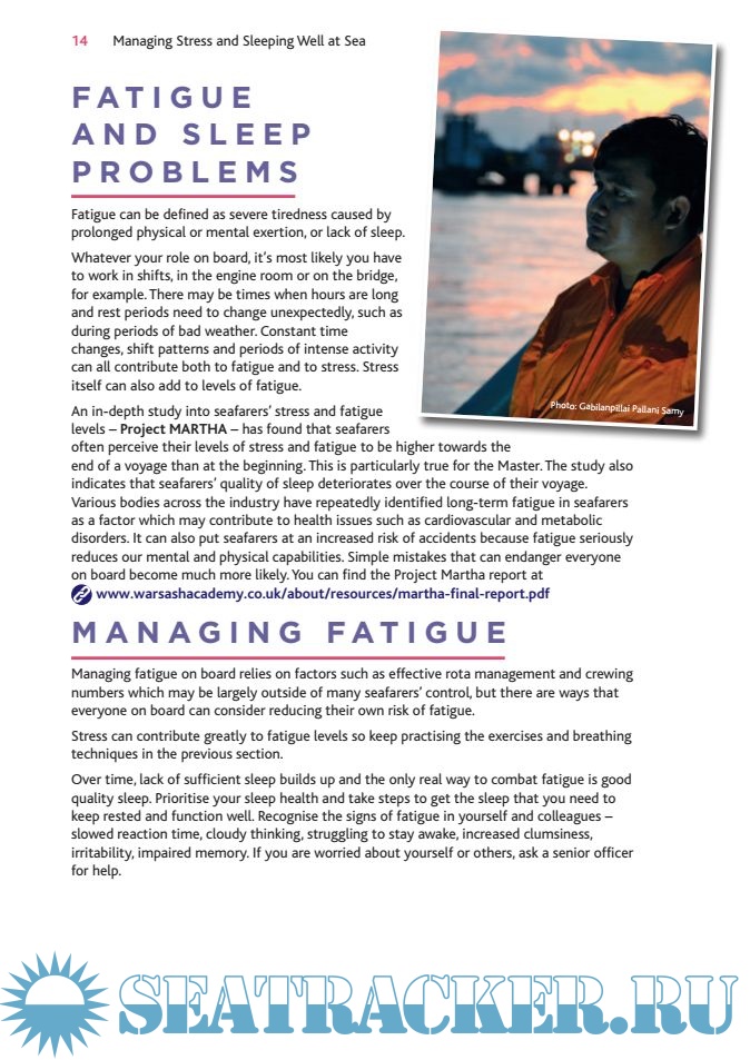 Year: 201X Language: english Author: ISWAN Publisher: ISWAN Format: PDF Quality: eBook Pages count: 20 Description: 'Managing Stress and Sleeping Well at Sea’ is part of ISWAN’s series of Good Mental Health Guides for Seafarers. Seafarers face a number of challenges, some of which may be shared by other professions, like long working hours and shift work, and some that are unique, like long periods away from home, living and working in the same place, lack of shore leave, adverse weather, noise and vibration and even the risk of piracy. This guide provides some useful information to understand stress and its effects, and offers practical strategies to recognise stress and cope effectively. The guide also provides some advice on how to manage fatigue which may affect you when you’re away at sea and how to get the most from your sleep.