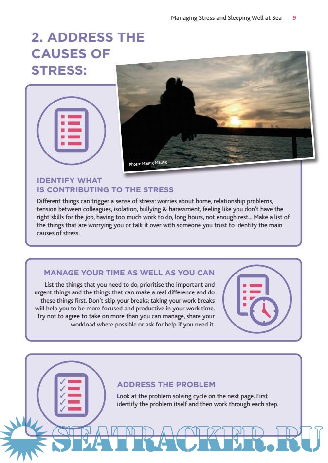 This guide provides some useful information to understand stress and its effects, and offers practical strategies to recognise stress and cope effectively. The guide also provides some advice on how to manage fatigue which may affect you when you’re away at sea and how to get the most from your sleep.