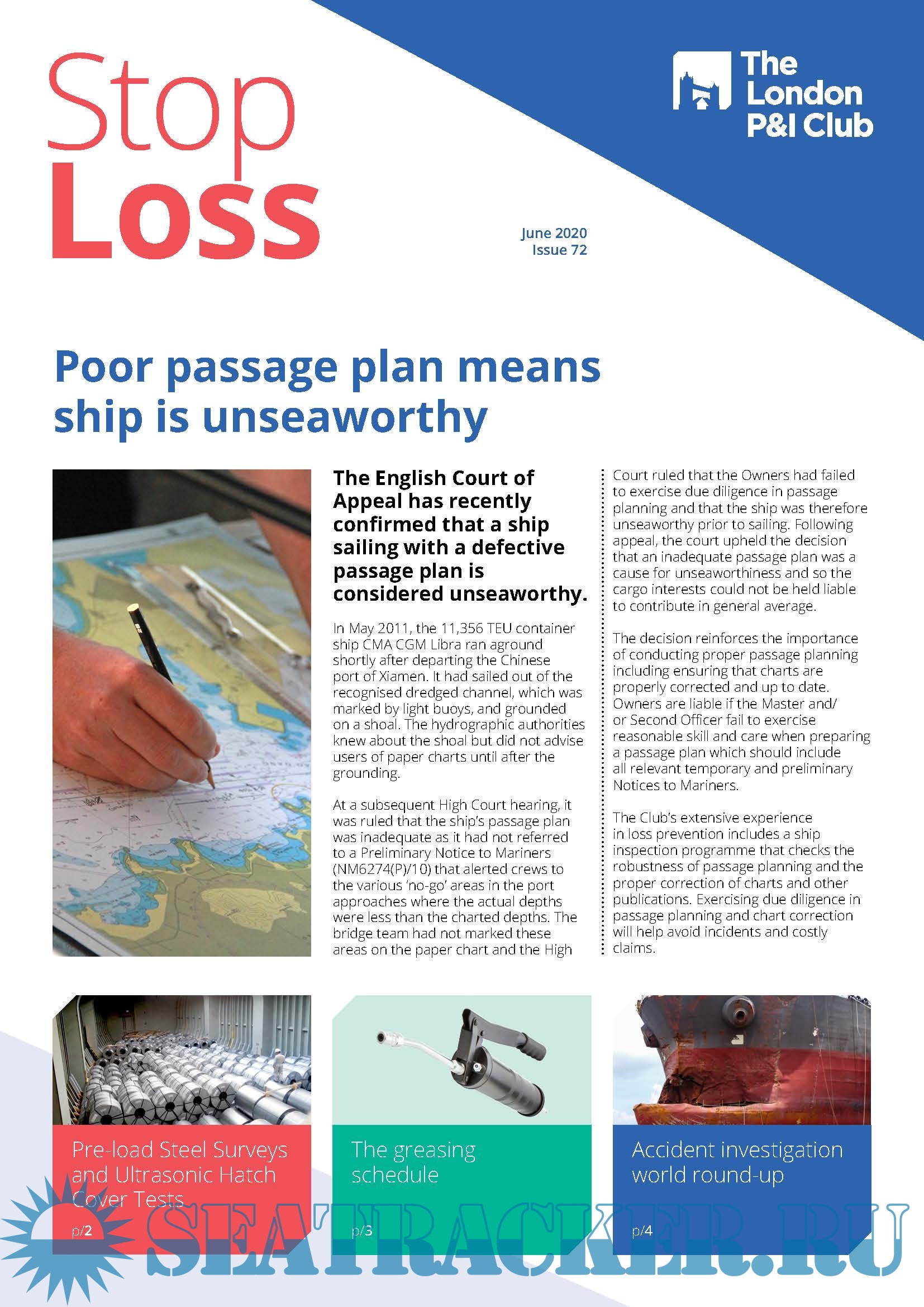 StopLoss 72 Poor Passage Plan means ship is unseaworthy