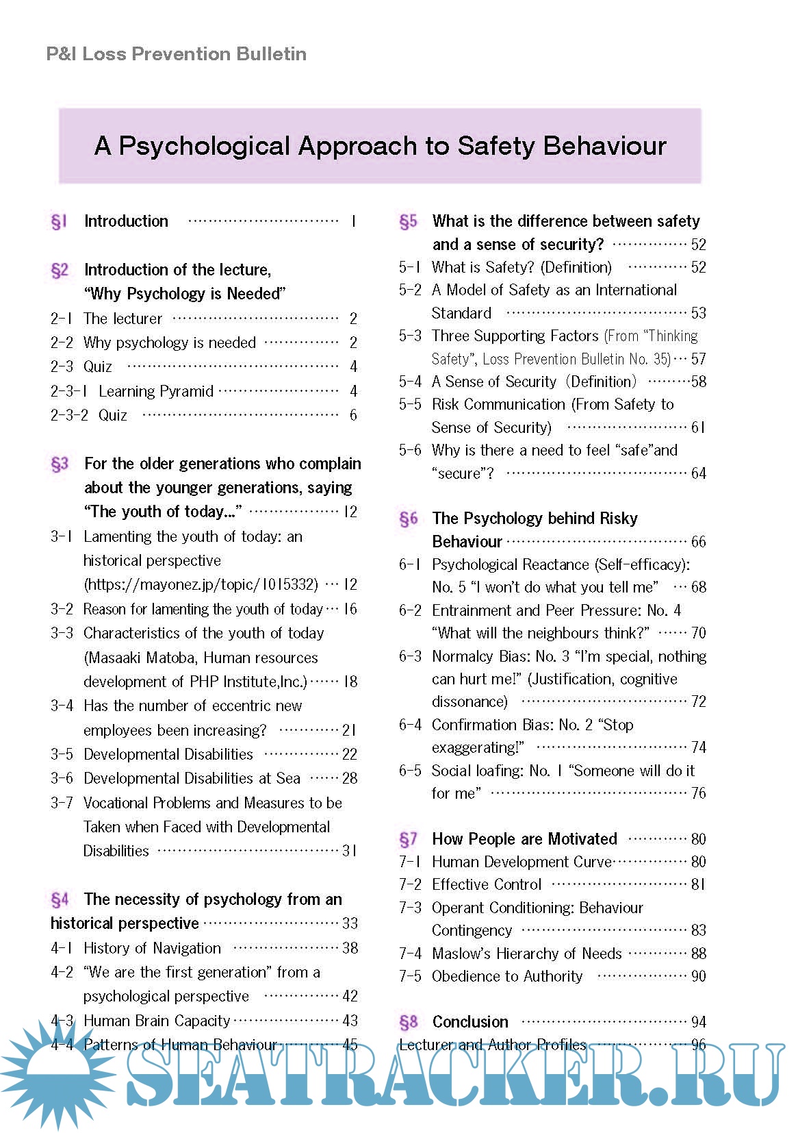 P&I Loss Prevention Bulletin Vol. 46 & 47 - A Psychological Approach to Safety Behaviour & A Psychological Approach to Safety Behaviour Continued...