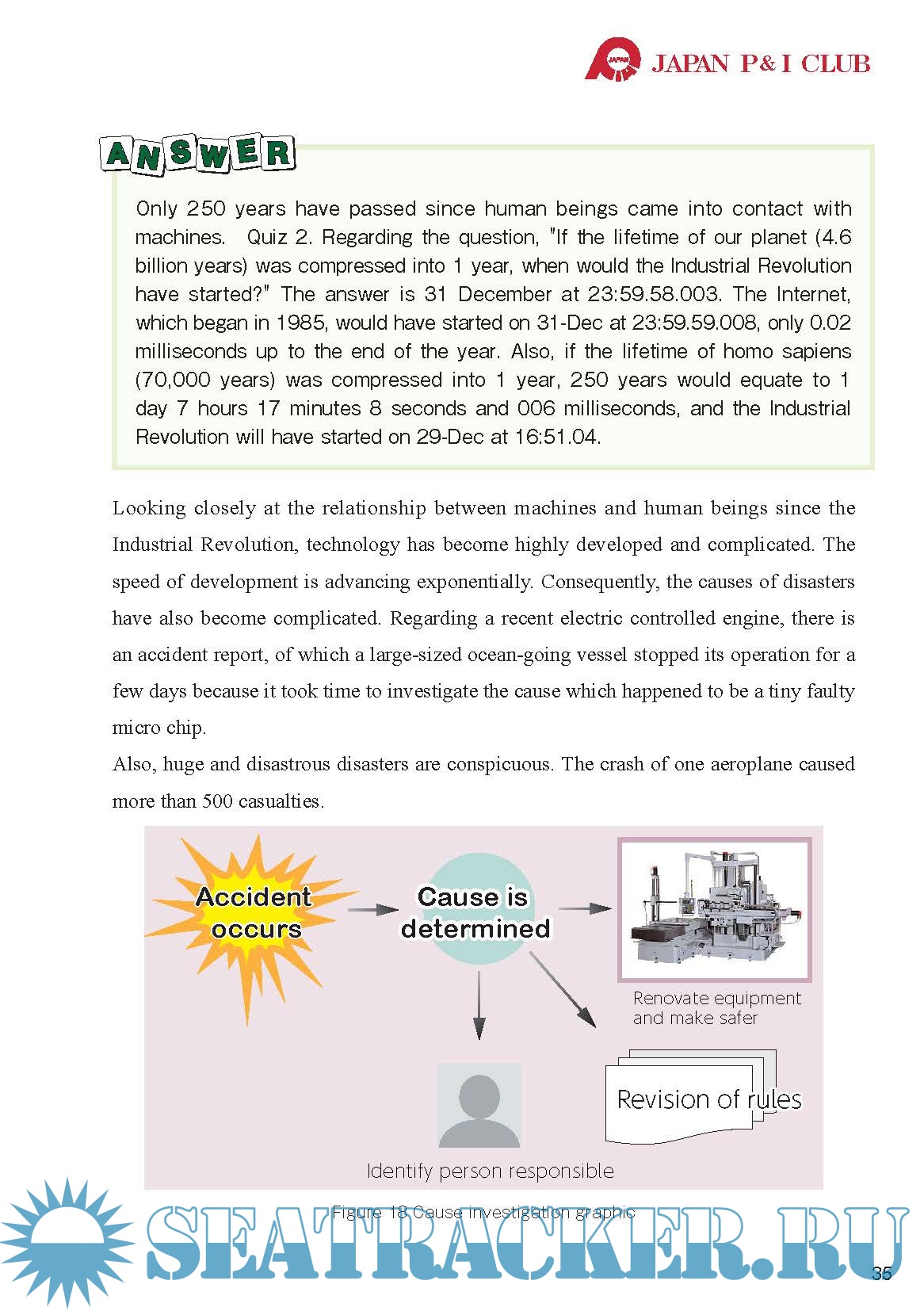 Year: 2020 Language: english Author: Japan P&I Club Genre: Guide Format: PDF Quality: eBook Pages count: 172 Description: Almost 70% of all maritime accidents are said to be caused by human error. Along with damage to harbour facilities brought about by strong gusts of wind and tidal currents during docking work, on examining the root cause, in most cases this was down to inadequate prior inspection and careless mistakes. More than 90% of all maritime accidents are said to be caused by human error. Although it is not possible to eliminate human errors, we consider that having an understanding of the underlying human psychological factors and characteristics may be an effective way to reduce human errors. As a result, we then launched our seminars in 2019 with a focus on psychology. We hope that this will facilitate the reduction of accidents at sea.