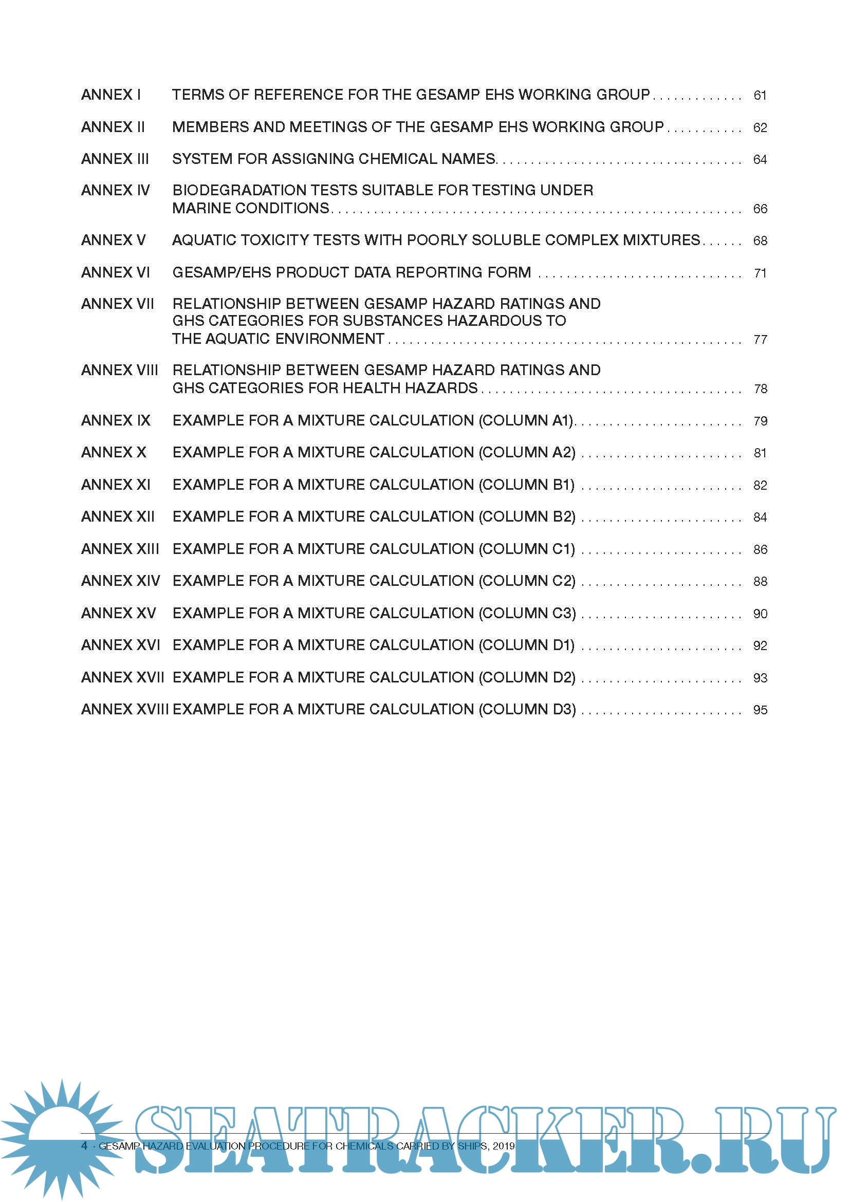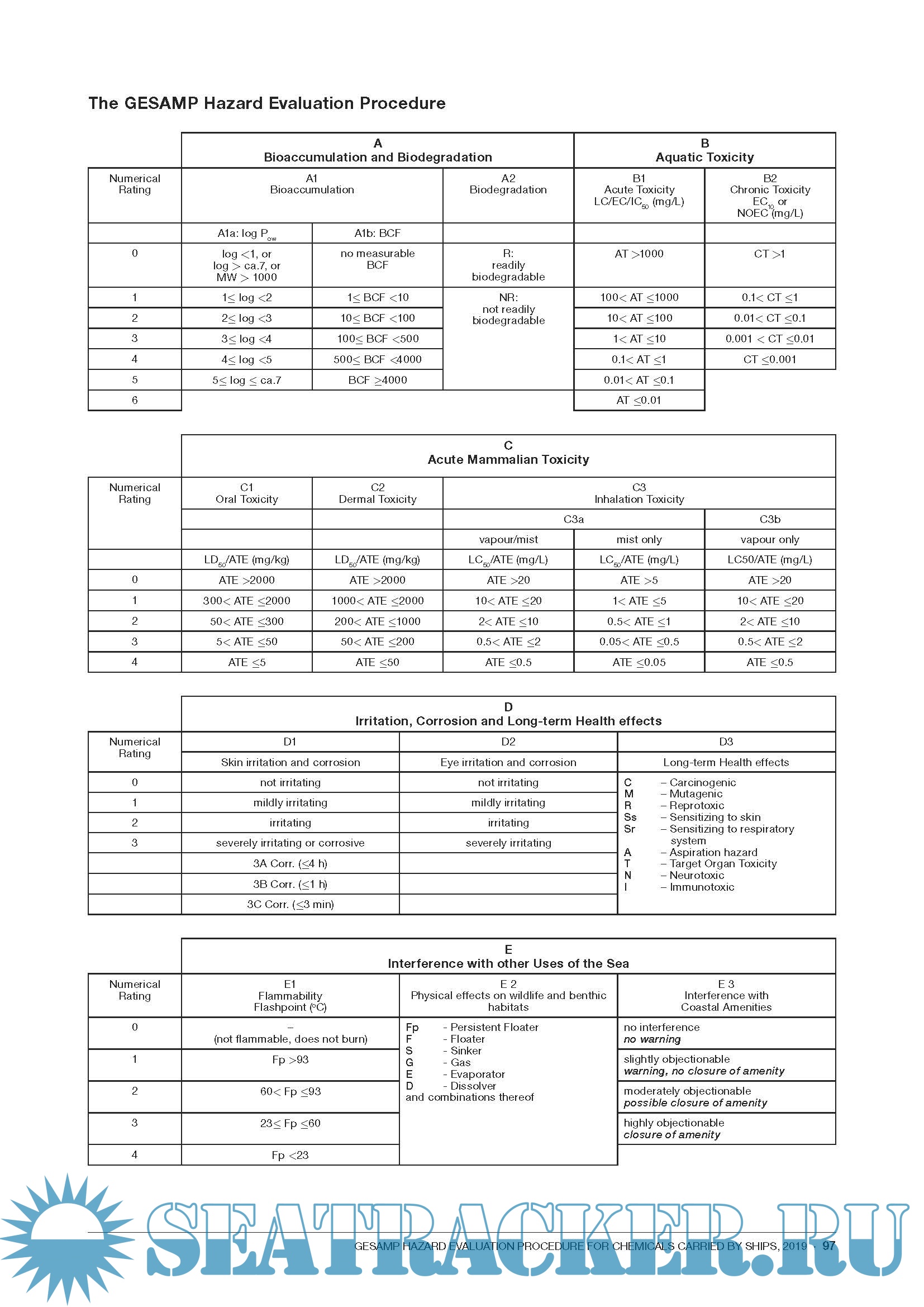 Description: GESAMP is an advisory body consisting of specialized experts nominated by the Sponsoring Agencies (IMO, FAO, UNESCO-IOC, UNIDO, WMO, IAEA, UN, UN Environment UNDP and ISA) of the United Nations. Its principal task is to provide scientific advice concerning the prevention, reduction and control of the degradation of the marine environment to the Sponsoring Agencies. The report contains views expressed or endorsed by members of GESAMP who act in their individual capacities; their views may not necessarily correspond with those of the Sponsoring Agencies. GESAMP wishes to draw attention to the fact that the hazard evaluation rationale was conceived for the particular purpose of the development and implementation of the International Convention for the Prevention of Pollution from Ships, MARPOL. The guidance on hazard evaluation contained in this publication is therefore intended primarily to be used for that purpose. Although it should not normally be used out of context, this guidance (or elements thereof) may be found useful for other hazard evaluation purposes provided the limitations and restrictions imposed upon such guidance by the hazard assessment rationale, as well as any associated risks, are fully appreciated.