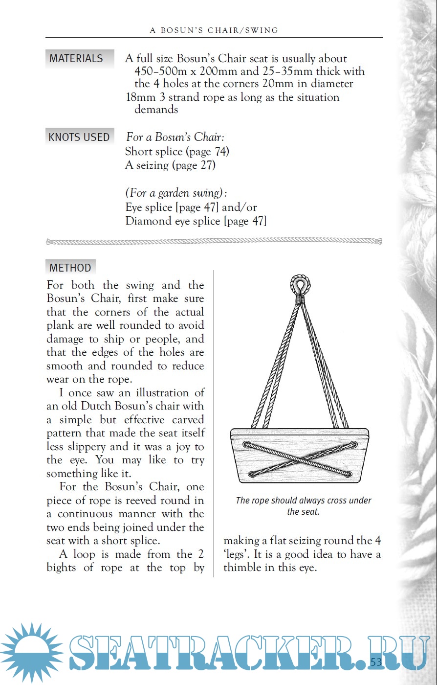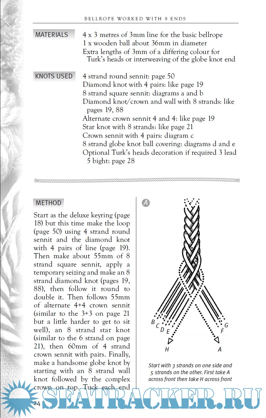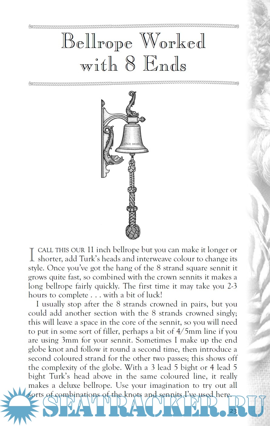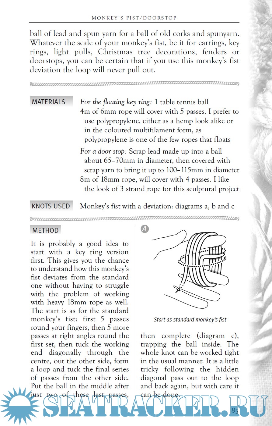 Description: Many books have been published on how to tie practical knots, and some on decorative knotting. Often there may be an illustration of a finished item, but rarely is there a step-by-step breakdown, complete with the exact size and lengths of materials required and with full tying instructions. The idea behind this book arise when the author, many years ago, began taking notes in the margins of his knotting books, by writing down which type of rope and the exact amount to use, along with practical tips and tricks on how to do a good job. This book is written as a "recipe book", with ingredients, doses and tips for good preparation, and is focused on a project, rather than on a single knot. Illustrations by Ann Norman.