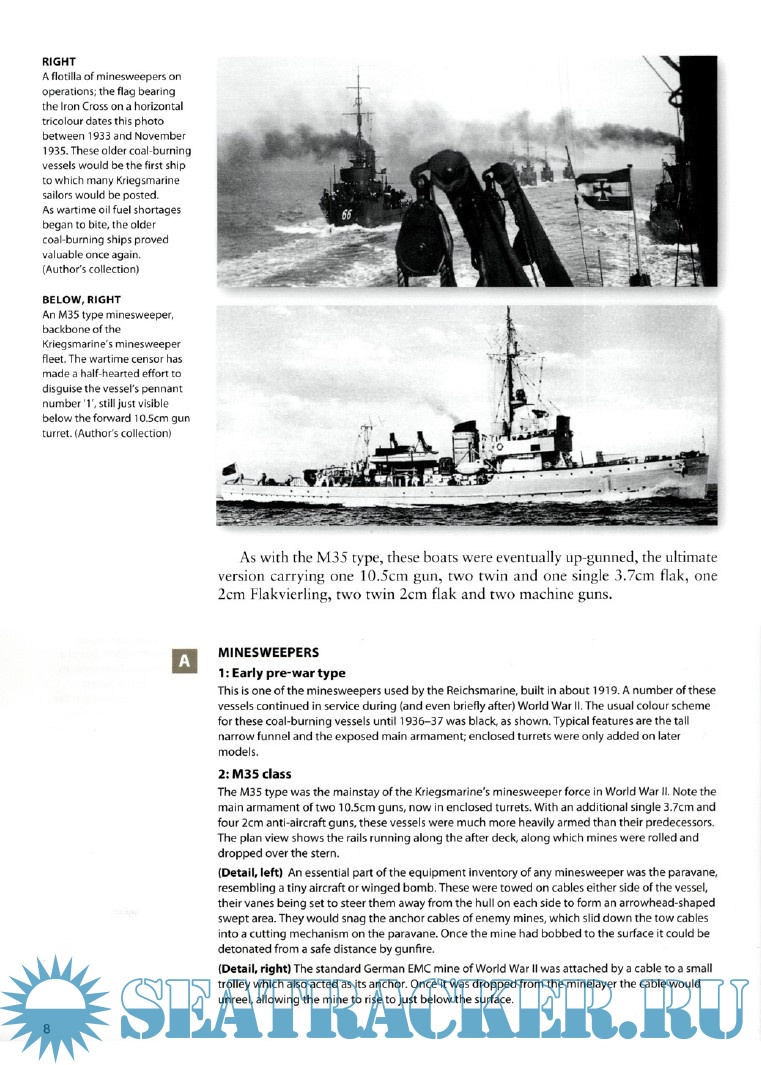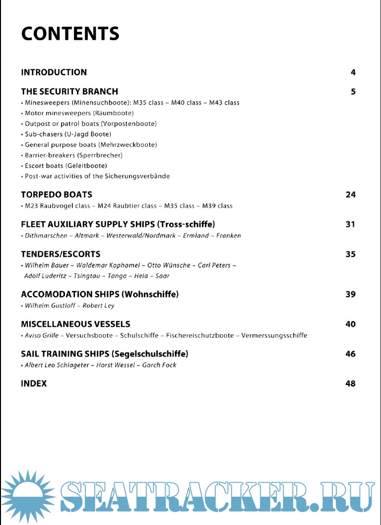 Year: 2009 Language: english Author: Gordon Williamson Genre: History Publisher: Osprey Publishing ISBN: 978-1-84603331 Format: PDF Quality: OCR without errors Pages count: 52 Description: While the pocket battleships and U-boats attract much of the attention paid to the wartime German Navy, the coastal and support branches represented by far the greater number of vessels and men, and the great majority of sea-duty. Without these ships no fleet could function. Germany's minesweepers alone formed a massive proportion of its total strength, and smaller branches of the Kriegsmarine were responsible for escort duties, patrol services, fleet auxiliary roles such as refuelling, hospital and accommodation ships and sail training. This book describes the most important of these minor warships - the characteristics, organization, deployment and war service of minesweepers, patrol and escort craft and torpedo boats; but also the vital fleet auxiliary supply ships, such as the famous Altmark, accomodation ships such as the ill-fated Wilhelm Gustloff, the depot tenders for U- and S-boat flotillas, and even the majestic pre-war sail training vessels.