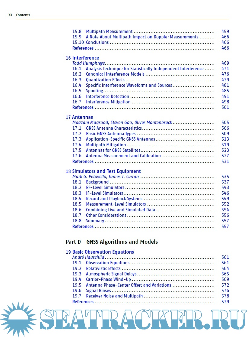 The book is divided in seven distinct parts, each comprising a set of four to eight individual chapters with a common range of topics. For example part A covers the basics of GNSS, in part B one can find a description of all the global, regional, and augmentation systems. Part C presents signal processing, receivers, and antennas. Part D deals with the modern achievements in GNSS algorithms, while part E shows the classical absolute and differential positioning, as well as all the new achievements in precise point positioning and GNSS/INS integration. Part F is dedicated to surveying, geodesy and geodynamics, and Part G to remote sensing and timing. Each of the 41 chapters contains a list of references, from which the reader can deepen the topics. Two annexes show the different receiver and data formats and outline the various GNSS parameters.