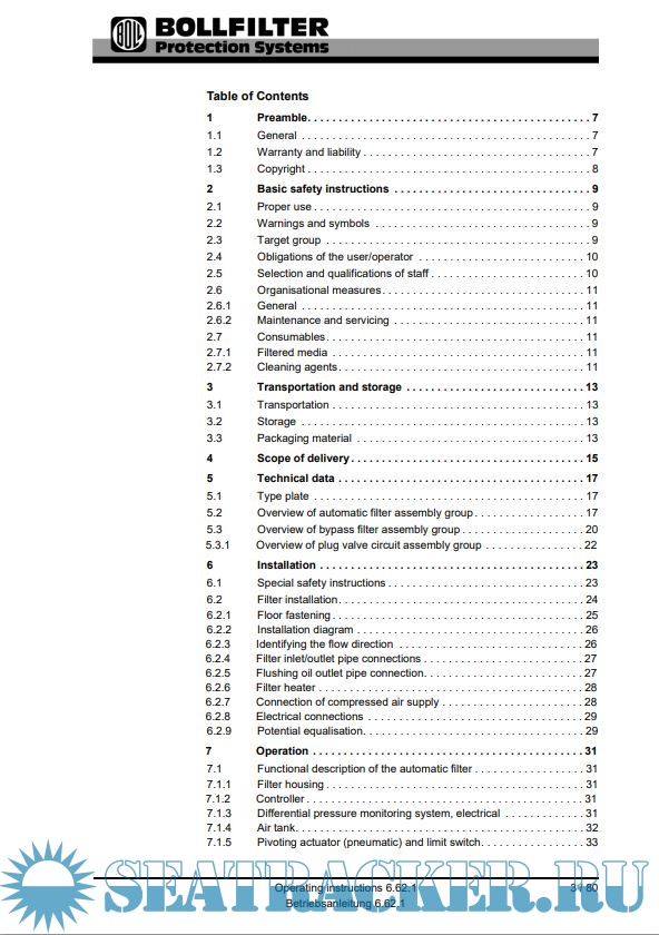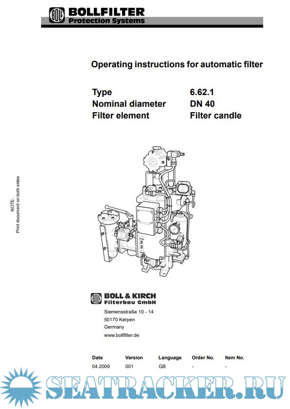 BollFilter Operating instructions for automatic backflushing filter (type 6.62.1) [2009,PDF]