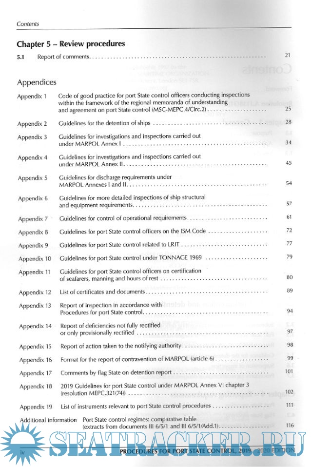 This edition includes a new appendix 18 on 2019 Guidelines for port State control under MARPOL Annex VI chapter 3, as adopted by resolution MEPC.321(74), which provide guidance on the conduct of PSC inspections on the control of emissions from ships, and afford consistency in the conduct of these inspections, the recognition of deficiencies and the application of control procedures. It also contains amendments to both the Guidelines for port State control officers on the ISM Code (appendix 8) and the Guidelines for port State control officers on certification of seafarers, manning and hours of rest (appendix 11).
