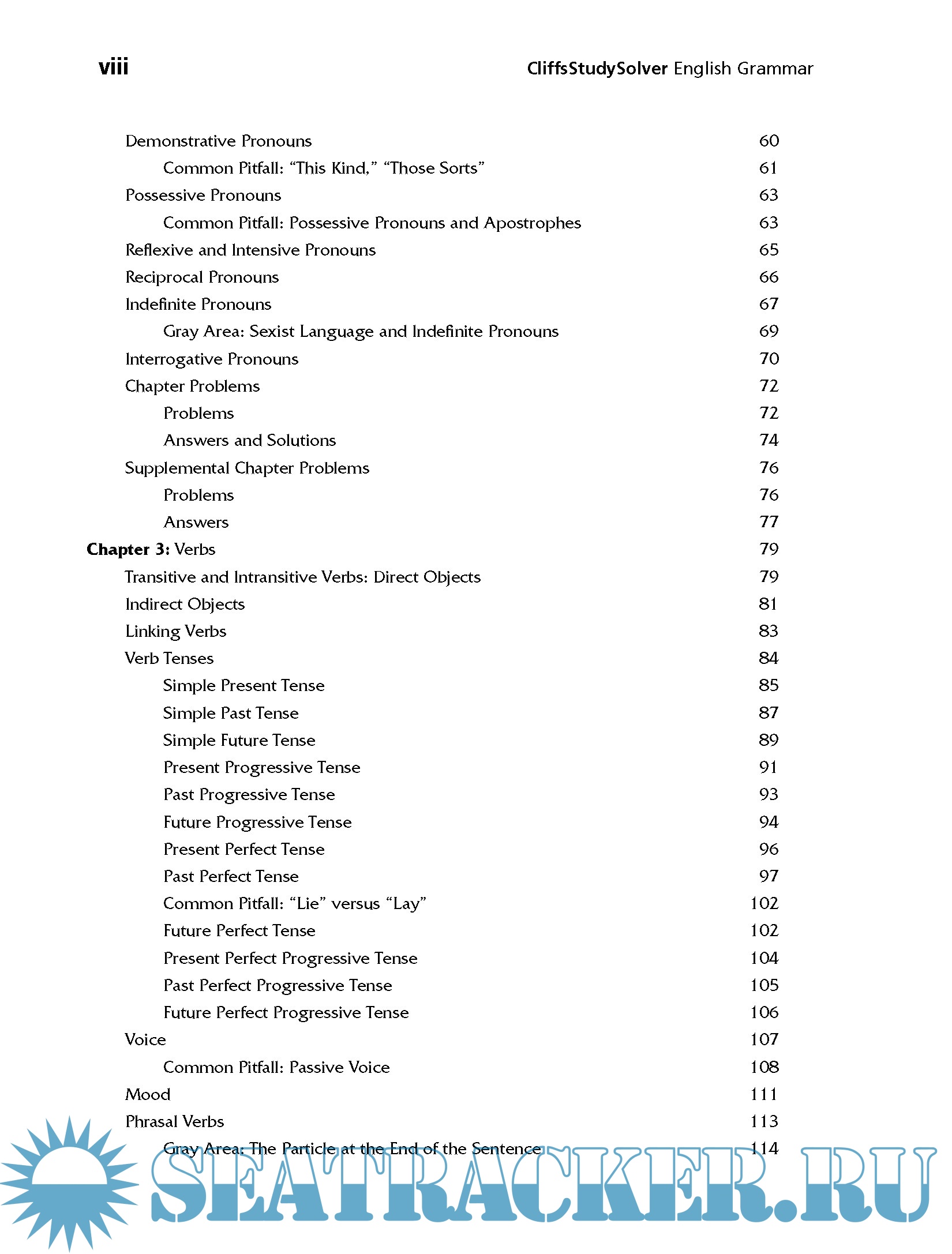 Year: 2003 Language: english Author: Jeff Coghill, Stacy Magedanz Genre: Textbook Publisher: Cliffs Notes ISBN: 9780764537660,0764537660 Format: PDF Quality: Scanned pages Pages count: 332 Description: The Cliffs Study Solver workbooks combine 20 percent review material with 80 percent practice problems (and the answers!) to help make your lessons stick.Cliffs Study Solver English Grammar is for students who want to reinforce their knowledge with a learn-by-doing approach. Inside, you'll get the practice you need to learn English grammar with problem-solving tools such as * Clear, concise reviews of every topic * Practice problems in every chapter - with explanations and solutions * A diagnostic pretest to assess your current skills * A full-length exam that adapts to your skill level A glossary, a list of commonly misused words, and punctuation and capitalization rules can help you communicate effectively. This workbook also covers the parts of speech, verbs, and active and passive voices. Explore other aspects of English including * Subjects and predicates * Adjective and adverbial phrases * Pronouns * Noun-verb agreement * Prepositions * Frequently encountered sentence problems * Using numerals Practice makes perfect - and whether you're taking lessons or teaching yourself, CliffsStudySolver guides can help you make the grade.Author Jeffrey Coghill is a medial librarian at East Carolina University in Greenville, NC; Stacy Magedanz is currently a reference librarian at California State University in San Bernardino. Both have M.A. degrees in English.