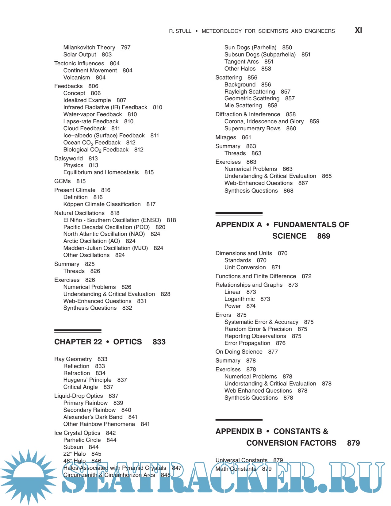 Year: 2015 Language: english Author: Stull R. Genre: Handbook Publisher: Sundog Publishing Edition: 3rd ISBN: 0888651767 Format: PDF Quality: Scanned pages Pages count: 940 Description: This book is designed for students and professionals who want to understand and apply basic meteorological concepts, but who don’t need to derive equations. To make this book accessible to more people, equations have been converted into algebra. With algebraic approximations to the atmosphere, you can see the physical meaning of each term and you can plug in numbers to get usable answers. No previous knowledge of meteorology is needed — the author starts from the basics. Your background should include algebra, trig, and classical physics. This book could serve the fields of Atmospheric Science, Meteorology, Environmental Science, Engineering, Air Quality, Climatology, and Geography. This book is designed to be both a textbook and a reference. As a textbook, the end of each chapter includes extensive homework exercises in categories inspired by Bloom’s taxonomy of learning actions: “Broaden Knowledge & Comprehension”; “Apply”; “Evaluate & Analyze”; and “Synthesize”. Although a hand calculator can be used for some of the homework exercises, other exercises are best solved on a computer spreadsheet such as Excel or using a mathematical program such as MATLAB, R, Mathematica, or Maple. I used Excel for my Sample Applications and most of my graphs.