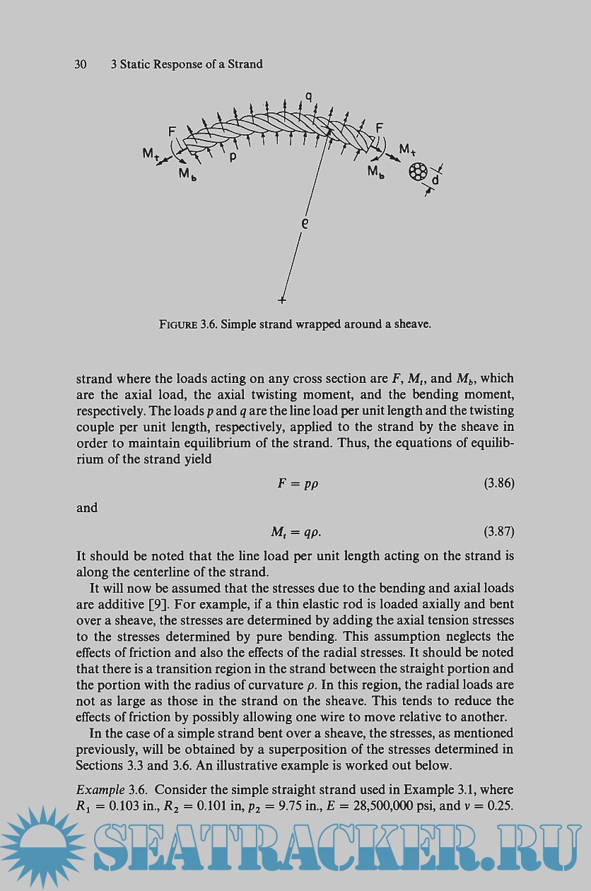 Description: This manual deals with the analysis of the static behavior of wire ropes under different loading conditions, and with the various theories of the fatigue. In recent years, considerable progress has been made in the development of models used to predict the response of ropes. Since there are so many parameters that can vary in the construction of a rope, such models can be used to determine the effects of possible variations of these parameters on the performance of a rope. Numerous examples are worked out to illustrate the theory, and the test results discussed. This second edition includes new chapters on tension and compression of a cord, fatigue, and assumptions and approximations used. Topics are treated with a clear language and many details of the solution steps are given; most of the cases are clarified by numerical examples. The book's aim is to be a comprehensive theoretical review of the mechanical behavior of wireropes, that can also be seen as a good handbook for those who are interested in practical design and evaluation of stresses in ropes with any geometry and cross-section.
