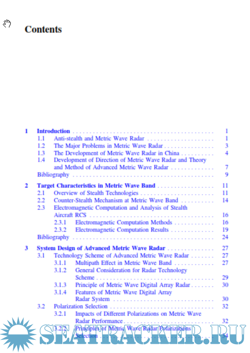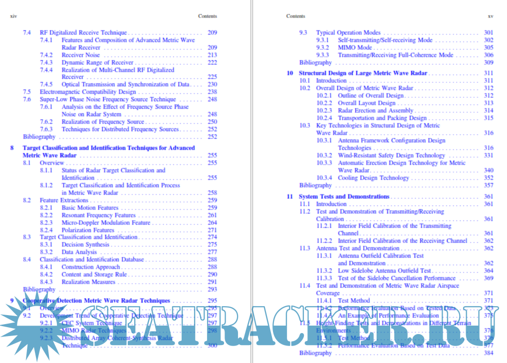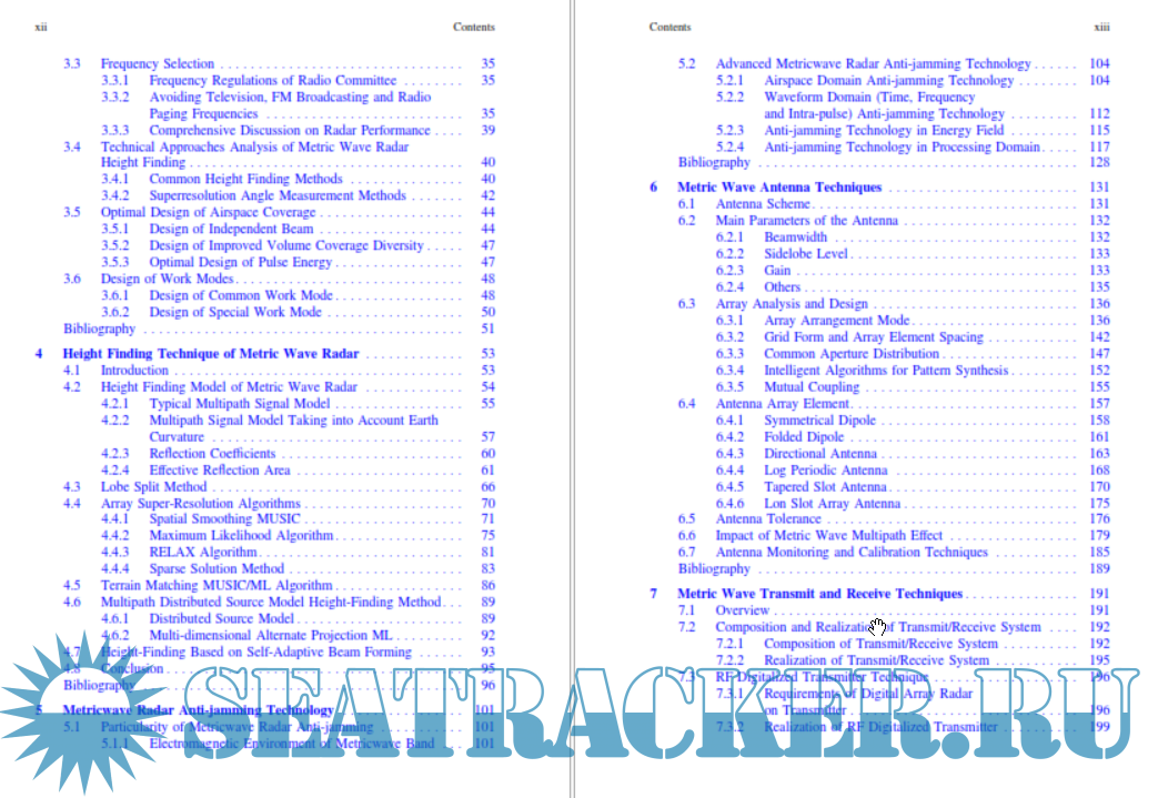 Year: 2020 Language: english Author: Jianqi Wu Genre: Reference book Publisher: NDIP, Springer ISBN: 978-981-10-7646-6, 978-981-10-7647-3 Format: PDF Quality: eBook Pages count: 392 Description: This book systematically describes advanced metric wave radar and its practical applications, offering a comprehensive introduction to the engineering design methods from the perspectives of system design, antenna/feed and transmit/receive subsystems, as well as mechanical structure design. Focusing on the height-finding method, it describes in detail how the super-resolution technique can be used to solve the problem of low-angle height finding in metric wave radar. It also discusses the anti-jamming method for the unique jamming environment. Further, it presents narrowband target recognition methods to overcome the limitations of narrow absolute bandwidth in metric wave radar and to further explore the technique’s potential. Cooperative detection for metric wave radar netting is also addressed, and the main experimental results are included. The book offers a valuable resource for professional engineers, researchers and teachers, as well as graduate students engaged in radar system engineering, electronic engineering, and signal processing.