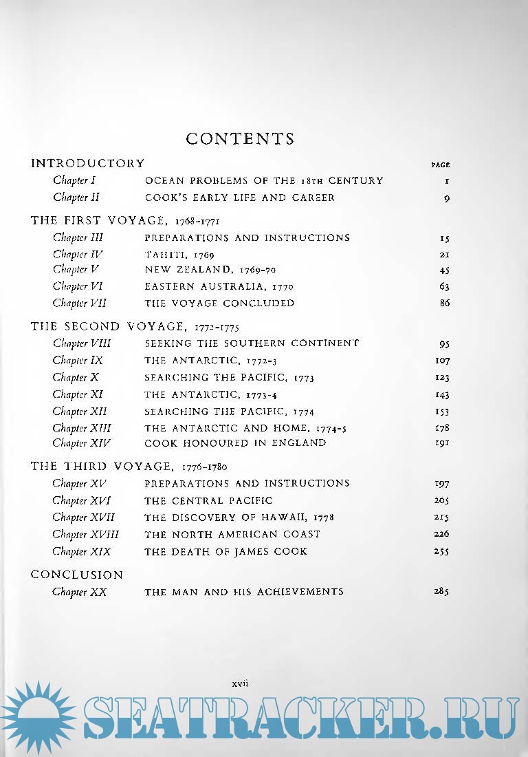 The text is structured in sections organized around each of the Three Voyages. The editor's commentary is found at the beginning and end of the seventeen chapters and occasionally within connecting journal extracts to provide continuity. Cook's death is based upon Lieutenant James King's account. A final chapter summarizes Cook's achievements. The editor concludes, "No previous navigator had contributed voyages of such length; remained at sea for such long periods, or brought back so much accurate knowledge of such an immense extent of the Earth."