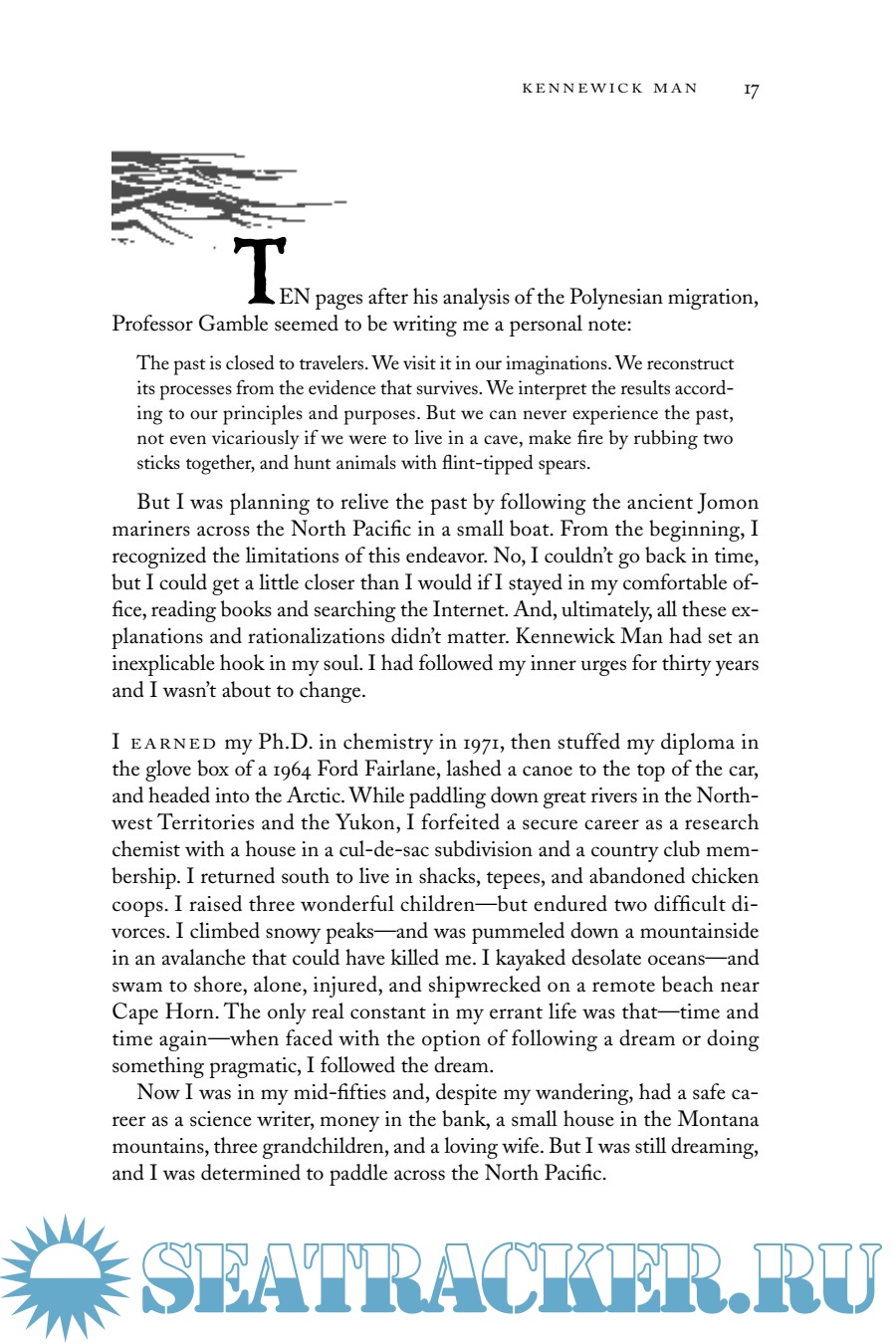Year: 2005 Language: english Author: Turk J. Genre: History Publisher: International Marine/McGraw-Hill ISBN: 0071467092 Format: PDF Quality: Scanned pages Pages count: 305 Description: The thrilling account of an extraordinary journey in the tradition of Kon-Tiki. In 1996 a 9,500-year-old skeleton was found beside the Columbia River, galvanizing anthropologists with the possibility that prehistoric humans reached North America from Asia by crossing the ocean in small open boats. In this compelling narrative, world-class kayaker and science writer Jon Turk relates his successful attempt to re-create this perilous migration. This story wraps an intriguing anthropological argument inside a gripping narrative about the sea, an ancient people, and the wilderness of northeast Siberia.. Recounting his two-year, 3,000-mile kayak voyage from Japan's bamboo forests to the tundra of Siberia and Alaska, Turk introduces strong archeological and anthropological evidence that his expedition was not the first. He explains how the ancient Jomon people could have completed this journey 10,000 to 15,000 years ago and provides insight into the question of why they did it. Both fascinating adventure and riveting prehistory, In the Wake of the Jomon is destined to become a classic..