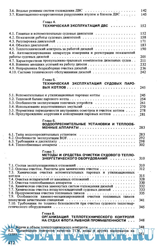 Рассмотрен комплекс вопросов судовой теплотехники, включающий организацию теплотехнического контроля на судах, эффективное использование горюче-смазочных материалов, выбор режимов работ энергетических установок, порядок теплотехнических испытаний, методы и средства очистки судового оборудования от эксплуатационных отложений, технические средства по предотвращению загрязнения окружающей среды с судов.
