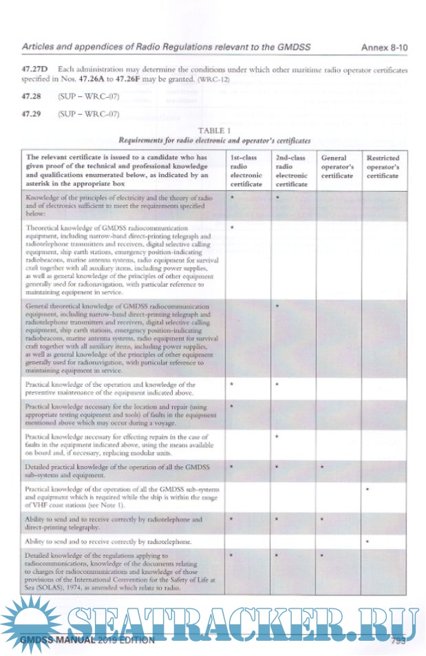 Excerpts from the relevant SOLAS regulations for the GMDSS