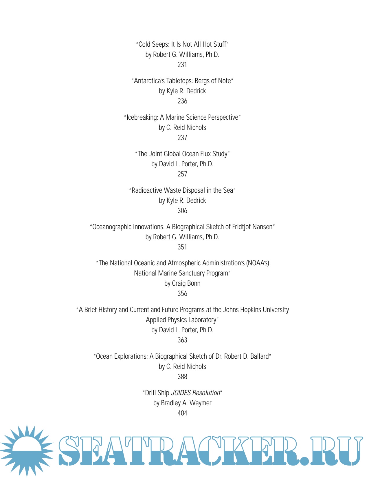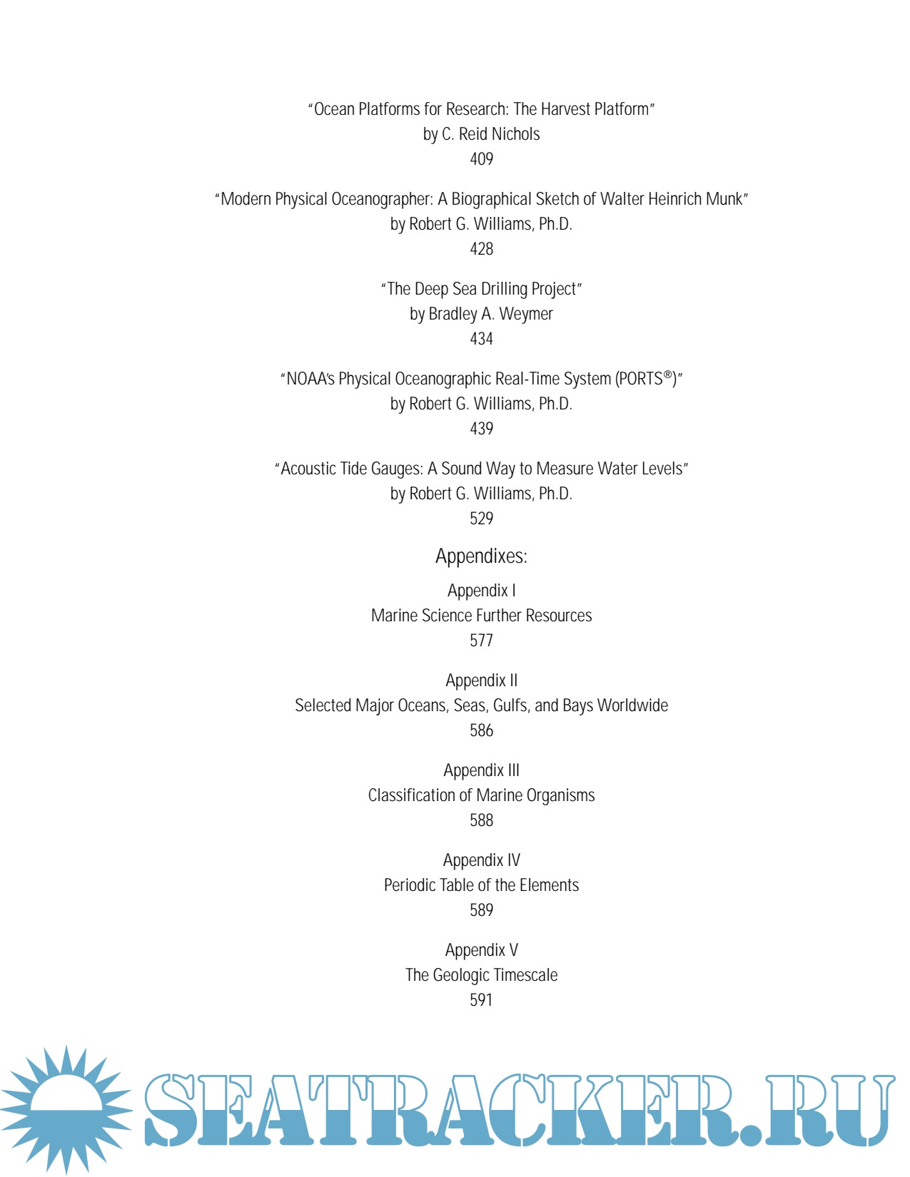Year: 2008 Language: english Author: Nichols R.C., Williams R.G. Genre: Encyclopedia Publisher: Facts on File ISBN: 0816050228 Format: PDF Quality: Scanned pages Pages count: 641 Description: An invaluable reference, "Encyclopedia of Marine Science" explores the principal areas and issues of this core science discipline in more than 600 entries, 20 essays, and more than 200 black-and-white photographs and line illustrations. This comprehensive new encyclopedia brings together information on marine science from its component and affiliate sciences, along with information on technology, commerce, business, society, history, and more.Detailed entries cover concepts, technologies, phenomena, organisms, treaties and legal issues, research stations, places and geographical features, vessels, experiments, marine sanctuaries, scientists and lawmakers, programs, organizations, occupations and careers, and other subjects related to marine science.