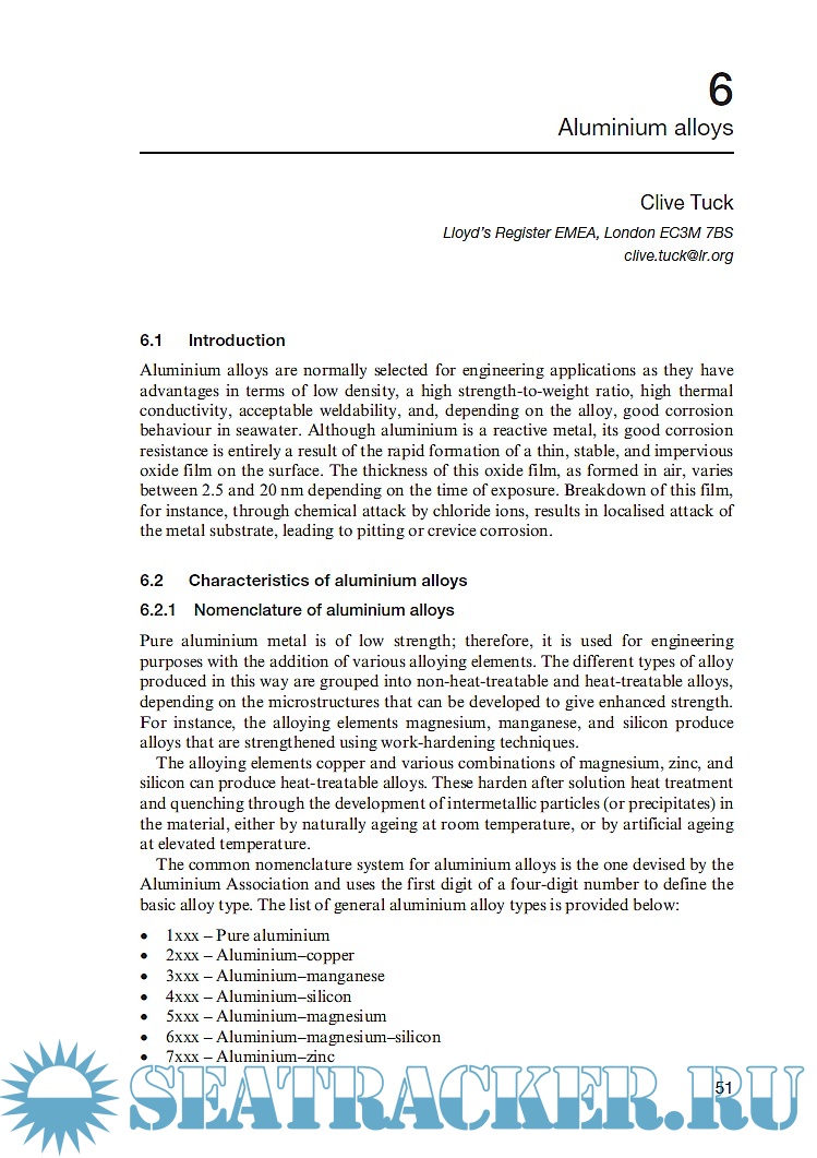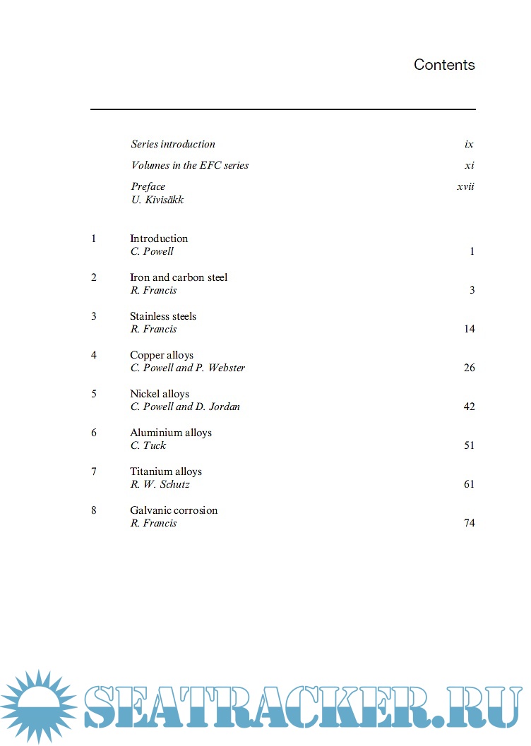Year: 2012 Language: english Author: Various Authors Genre: Technical book Publisher: Maney Publishing ISBN: 978-1-907975-59-2 Format: PDF Quality: eBook Pages count: 107 Description: Seawater is an aggressive and unpredictable medium; for most metals and alloys it causes degradation or corrosion. This can take the form of general thinning or more localised penetration in a variety of guises. Corrosion of metals and alloys in seawater is largely influenced by the oxygen content, seawater velocity, temperature, pollution, and marine organisms. The goal of this guide is to provide readers with a basic understanding of the types of alloy used in seawater, including the types of corrosion problem encountered, how to avoid them, and, in case of a failure, solutions to replace the component. The terminology used assumes the reader has no prior knowledge of corrosion engineering; the explicit intent is to allow operators to quickly obtain an overview of important practical issues. Chapters cover the main alloy groups, starting with steel as the most widely used construction material. Each subsequent chapter discusses applications, the typical alloys used, basic properties, and corrosion resistance for the various alloy groups. The final chapter specifically examines galvanic corrosion because, of all the corrosion mechanisms, this is perhaps the easiest to misunderstand and regularly causes significant problems. Additional info: European Federation of Corrosion and NACE International Joint Publication NUMBER 63