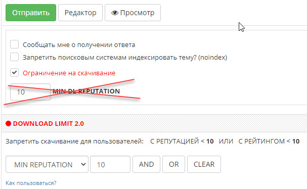 Due to numerous requests, the Reputation Limit system on tracker has been modified. Added a new condition: ratio limit. Now, when creating a release, the releaser can add 2 conditions for downloading: