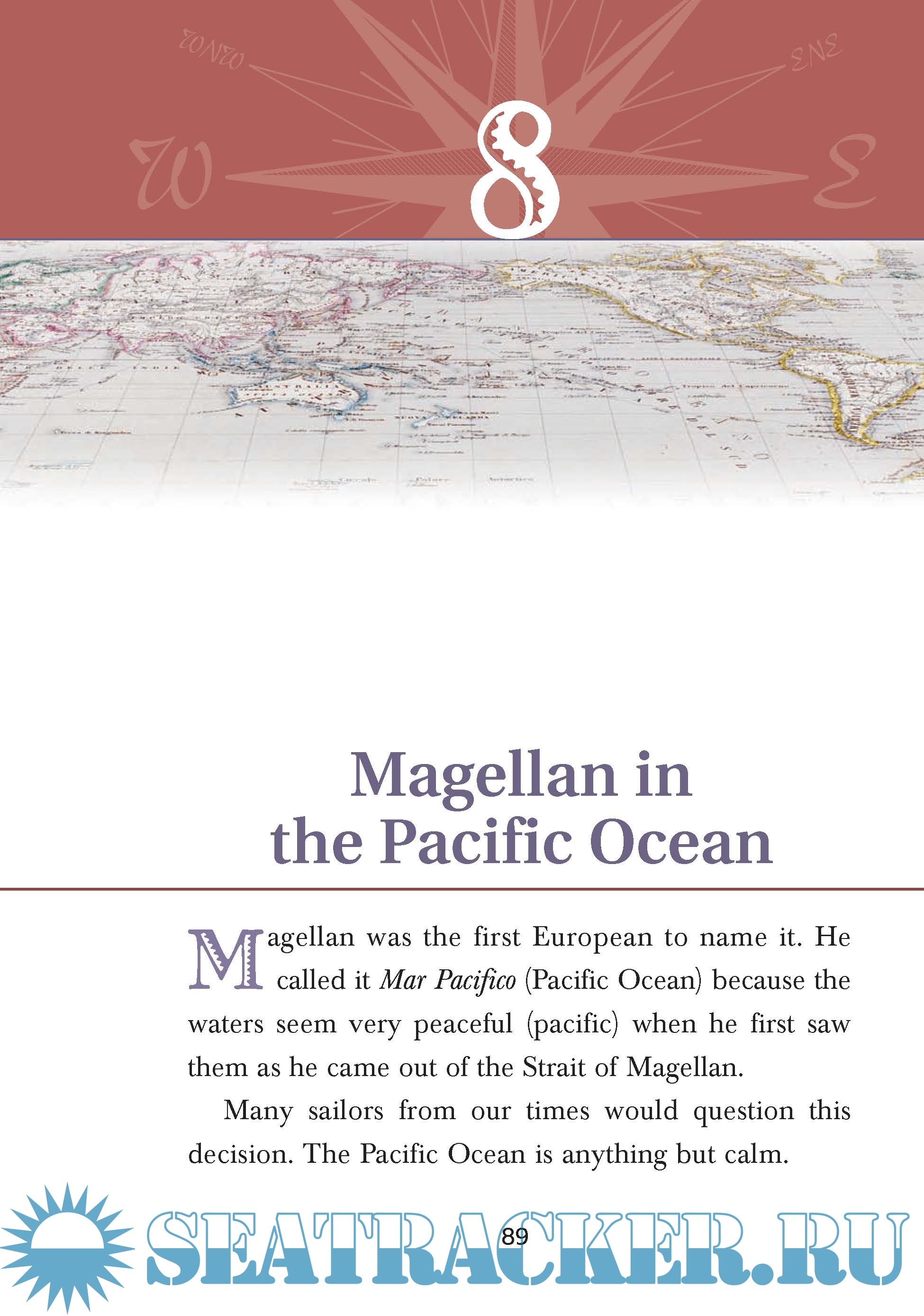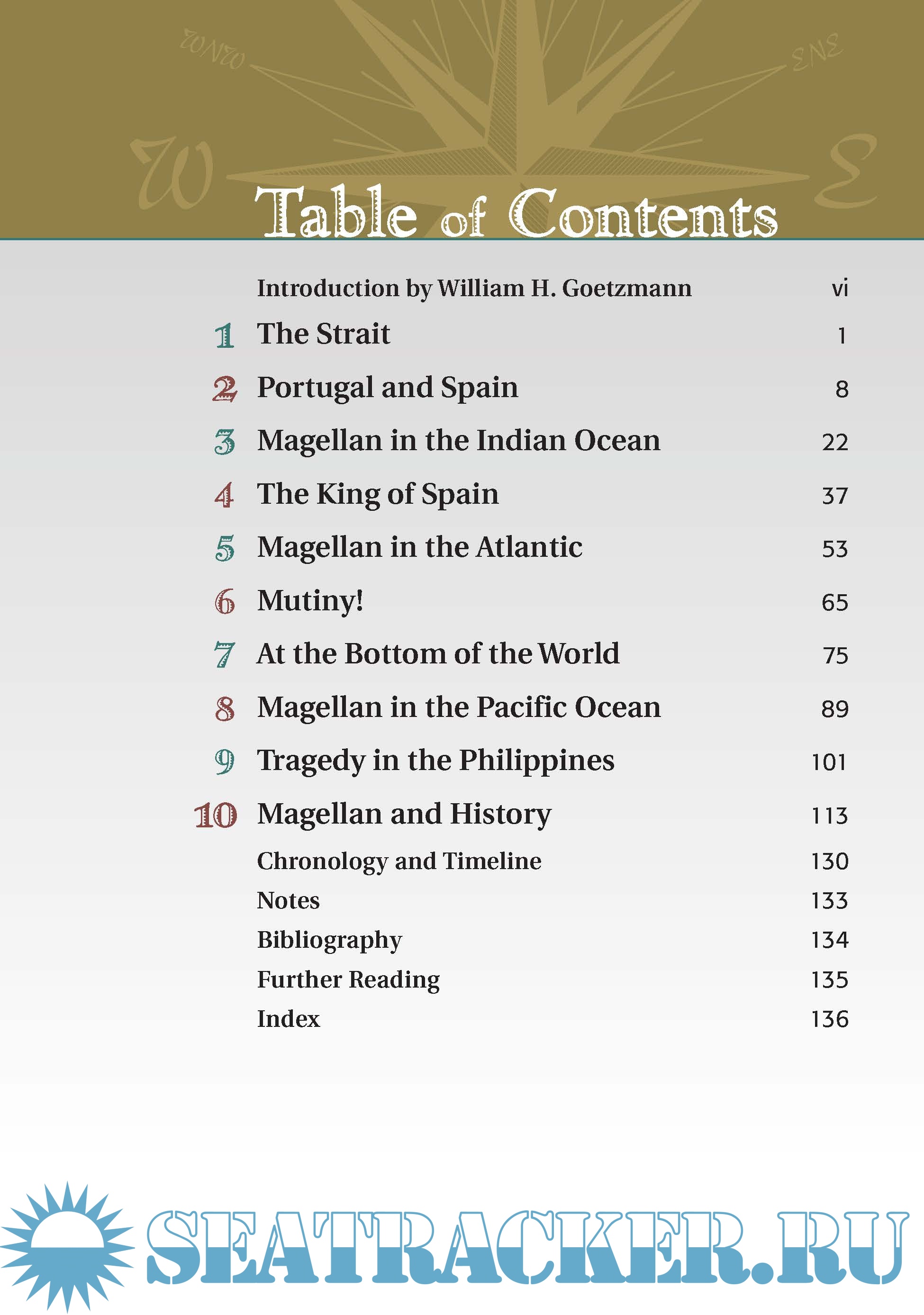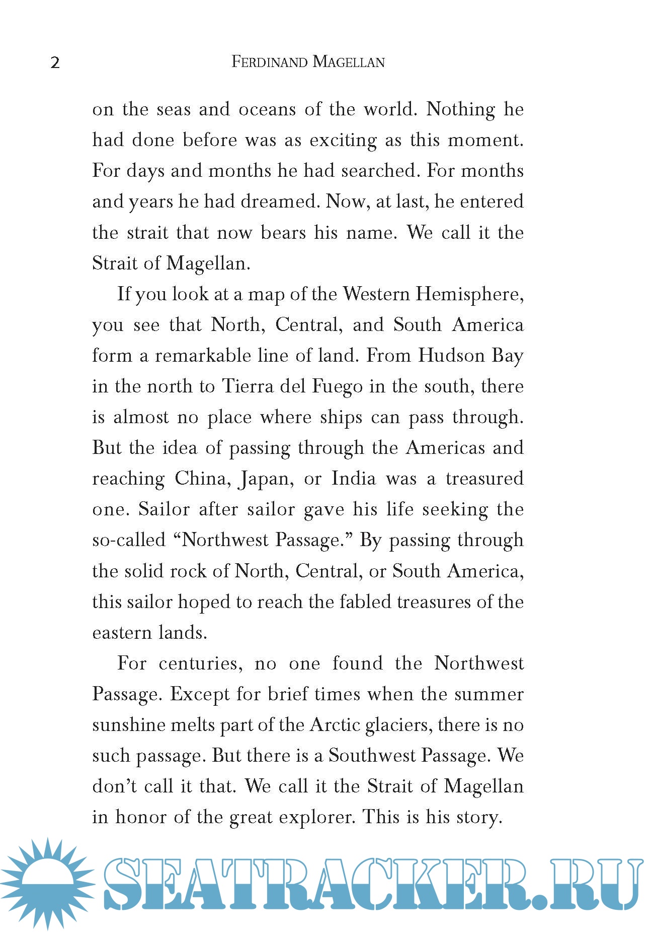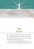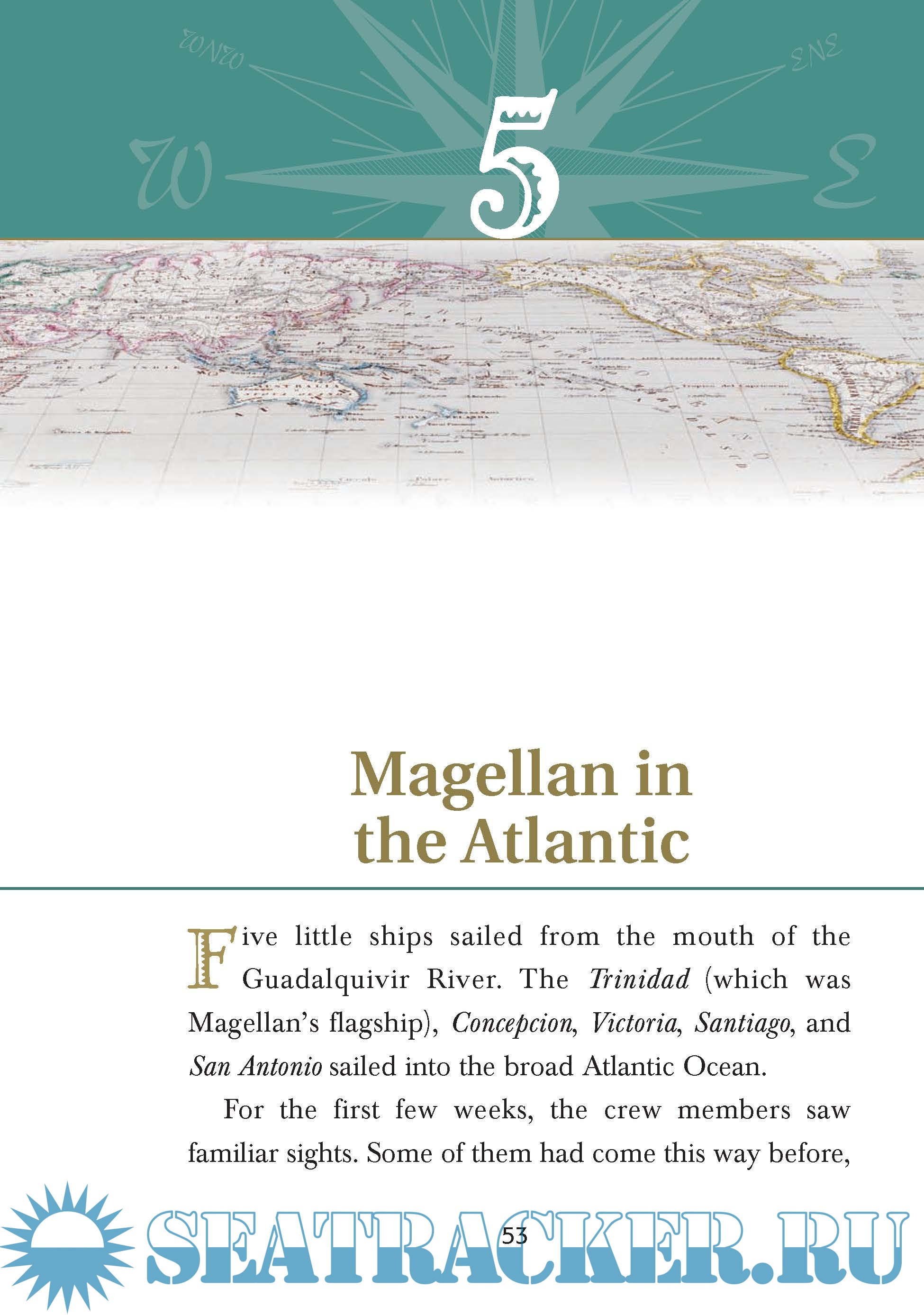 Description: Magellan set out in 1519 with five ships to find a passage through the Americas. Such a passage, if it existed, would allow Spanish ships to follow a westward route to the East Indies. After months of fruitless searching, Magellan eventually found a narrow, dangerous sea passage at the bottom of South America-now called the Strait of Magellan. In 1522, a lone ship sailed into the harbor at Seville, making its crew the first men to sail completely around the world.