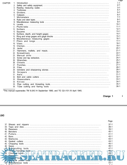 Year: 2013 Language: english Author: DEPARTMENTS OF THE ARMY, NAVY, AIR FORCE AND MARINE CORPS Genre: Technical book Format: PDF Quality: Scanned pages + text layer Pages count: 368 Description: This manual provides information on the use and care of selected hand tools and measuring tools. It will explain the types and uses of a large number of tools, a practical application of a selected group of tools, safety requirements, general care, and limited repair. A user must have, choose, and use the correct tools in order to do the work quickly, accurately, and safely. Without the proper tools and knowledge of how to use them, the user wastes time, reduces efficiency, and may face injury.