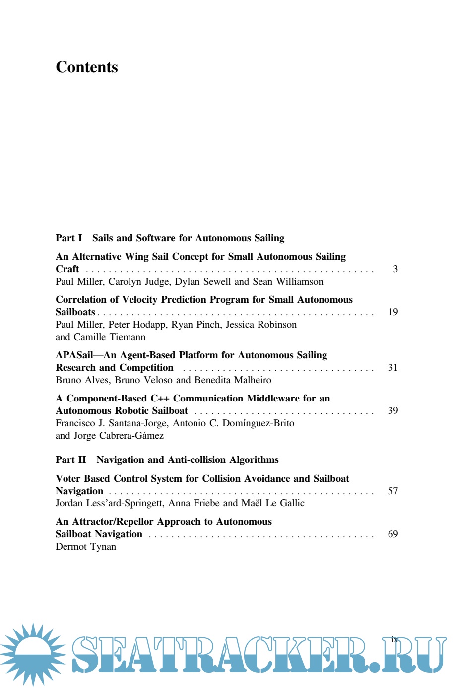 The book is divided into two parts. The first part contains papers which focus on the design of sails and software for the assessment and predication of sailboat performance as well as software platforms and middleware for sailboat competition and research. The second part includes algorithms and strategies for navigation and collision avoidance on local, mid- and long range.
