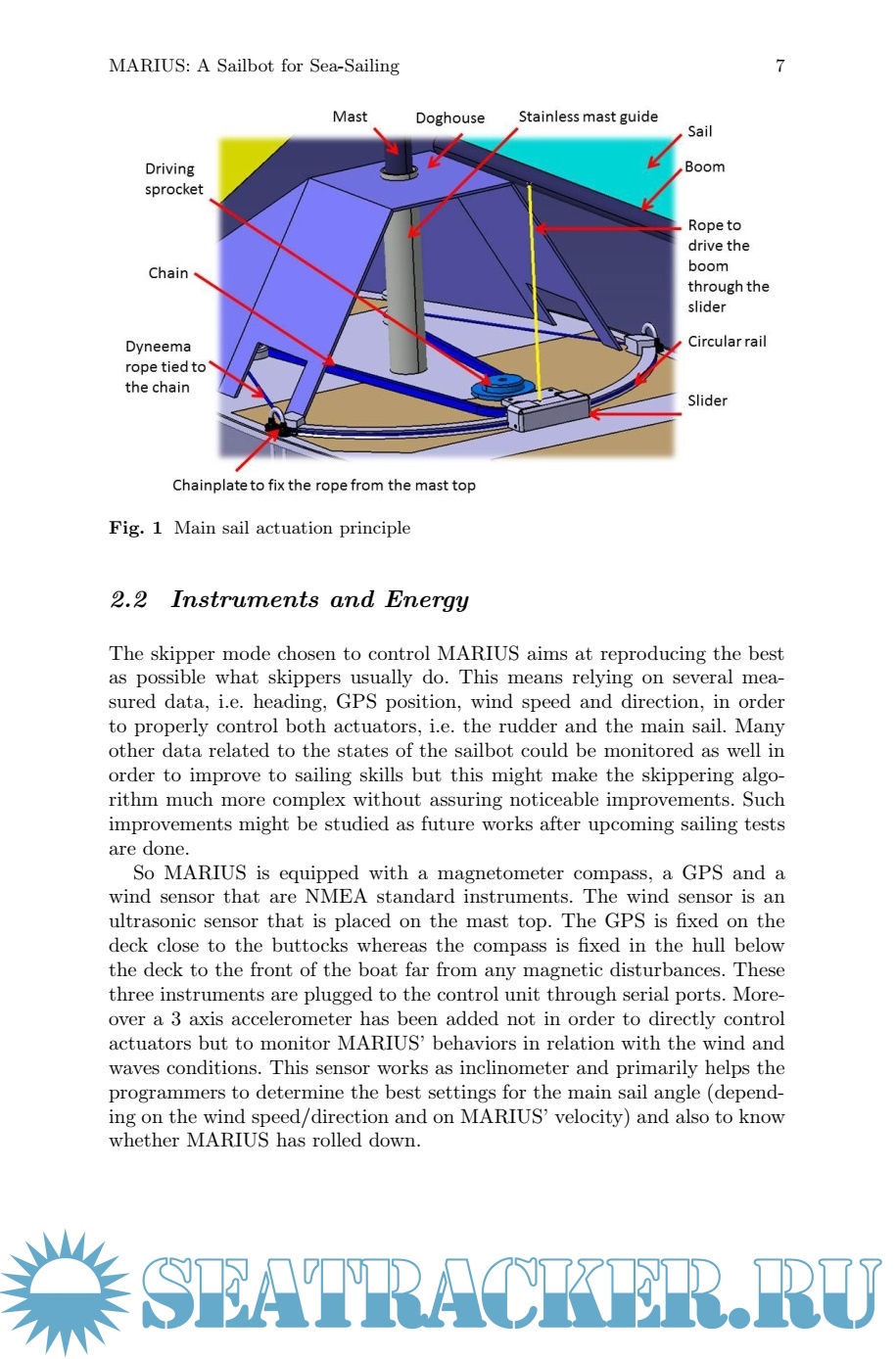 Description: An autonomous sailboat robot is a boat that only uses the wind on its sail as propelling force, without remote control or human assistance to achieve its mission. This involves autonomy in energy (using batteries, solar panels, turbines...), sensor data processing (compass, GPS, wind sensor...), actuators control (rudder and sail angle control...) and decision making (embedded computer with adequate algorithms). Although robotic sailing is a relatively new field of research, several applications exist for this type of robots: oceanographic and hydrographic research, maritime environment monitoring, meteorology, harbor safety, assistance and rescue in dangerous areas...