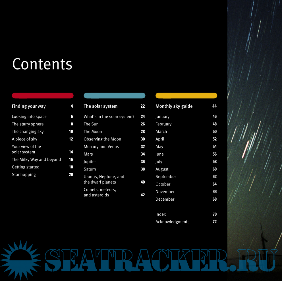 Year: 2007 Language: english Author: Carole Stott Genre: Guide Publisher: Dorling Kindersley Limited Edition: 1 ISBN: 978-0-7566-3120-8 Format: PDF Quality: eBook Pages count: 76 Description: Find everything you need to observe, understand and enjoy the night sky in this complete practical kit for star watchers. Pick up the handy visual guide and find out what you'll need to get started and when to look for stars, plus explore a complete introduction to the Solar System. Use the interactive planisphere to navigate the entire sky any time of night, throughout the year. Plus, 44 double-sided cards and a mini torch reveal how to identify each constellation, with hints and tips on special features to look for in each formation. Whether you're a complete beginner or an accomplished astronomer, this is your up-to-date guide to exploring the cosmos.
