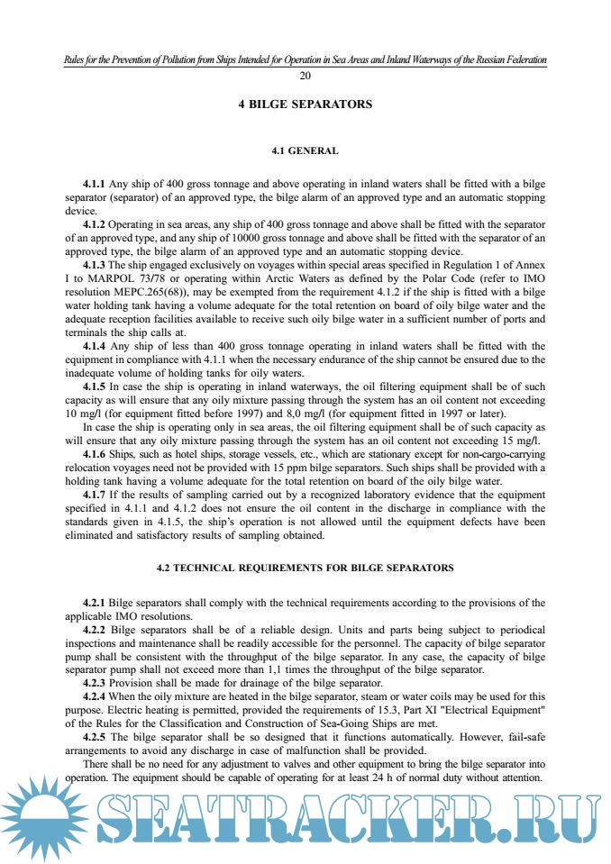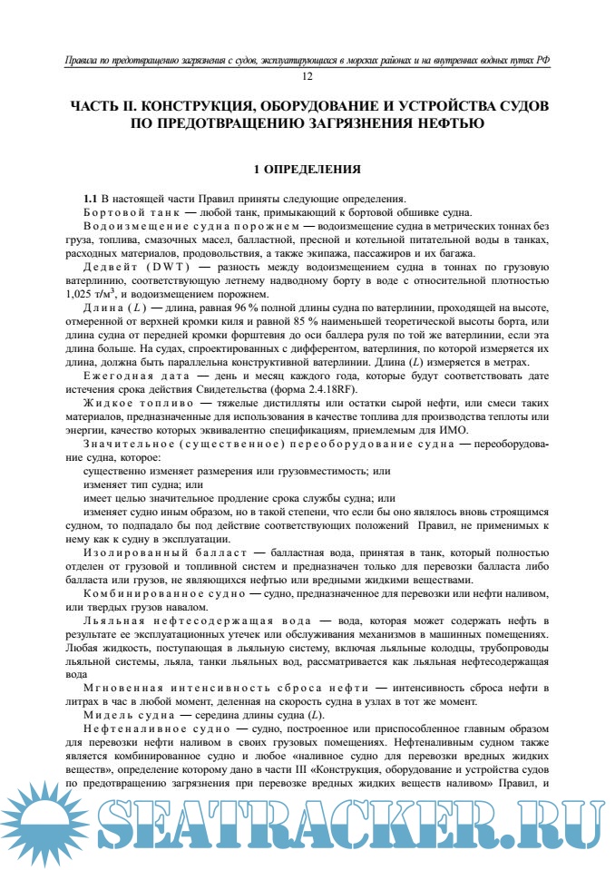 - Правила по предотвращению загрязнения с судов, эксплуатирующихся в морских районах и на внутренних водных путях Российской Федерации (2-020101-134).