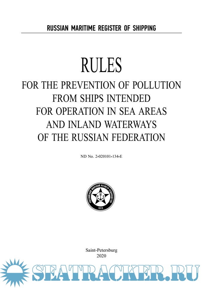 - Rules for the Prevention of Pollution from Ships Intended for Operation in Sea Areas and Inland Waterways of the Russian Federation (2-020101-134-E);