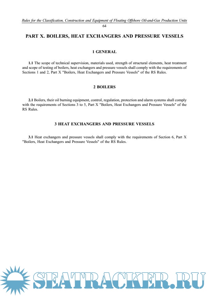 Настоящие Правила дополняют Правила классификации и постройки морских судов, Правила по оборудованию морских судов и Правила классификации, постройки и оборудования плавучих буровых установок и морских стационарных платформ.