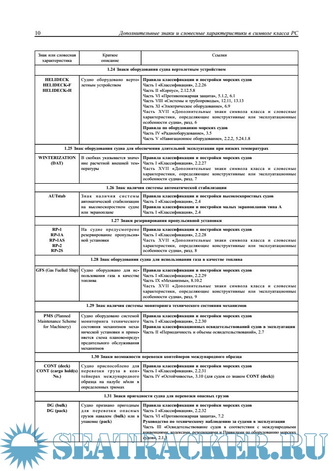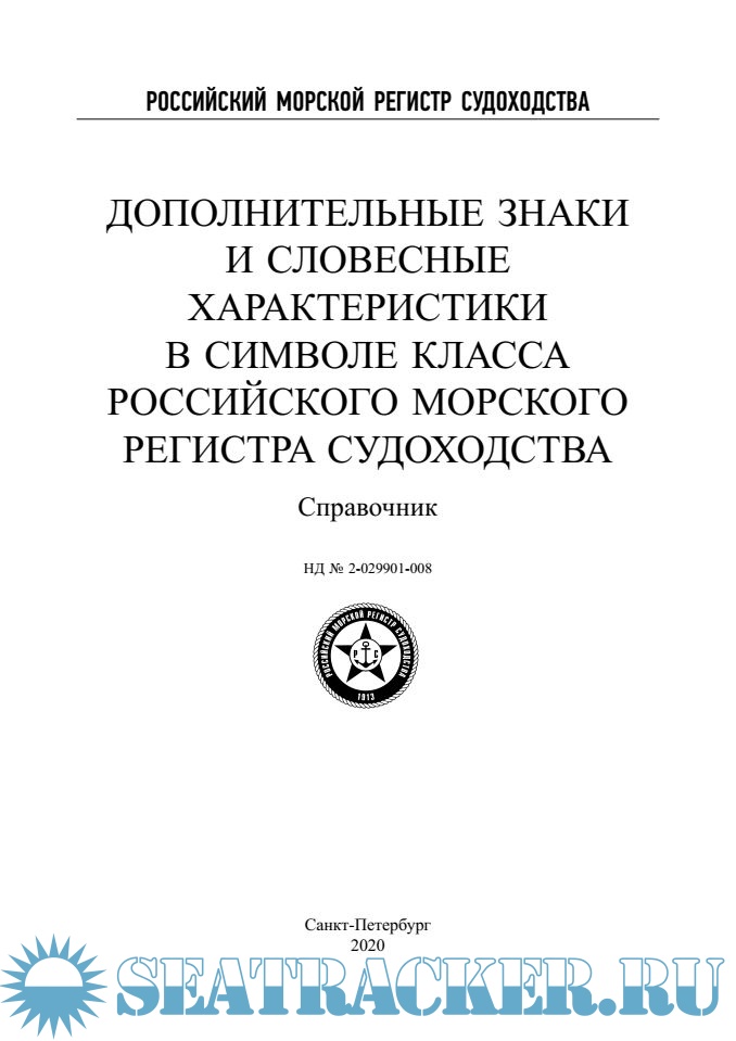 - Дополнительные знаки и словесные характеристики в символе класса Российского морского регистра судоходства 2-029901-008;