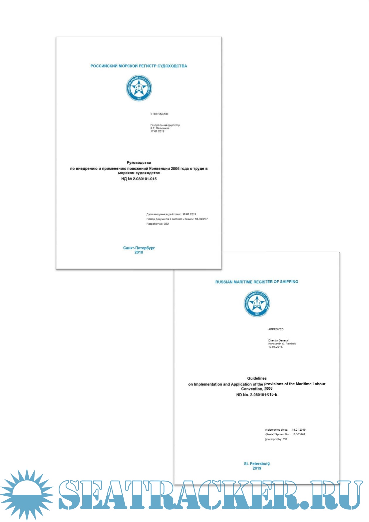 - Руководство по внедрению и применению положений Конвенции 2006 года о труде в морском судоходстве (2-080101-015);- Guidelines on Implementation and Application of the Provisions of the Maritime Labour Convention, 2006 (2-080101-015-E).