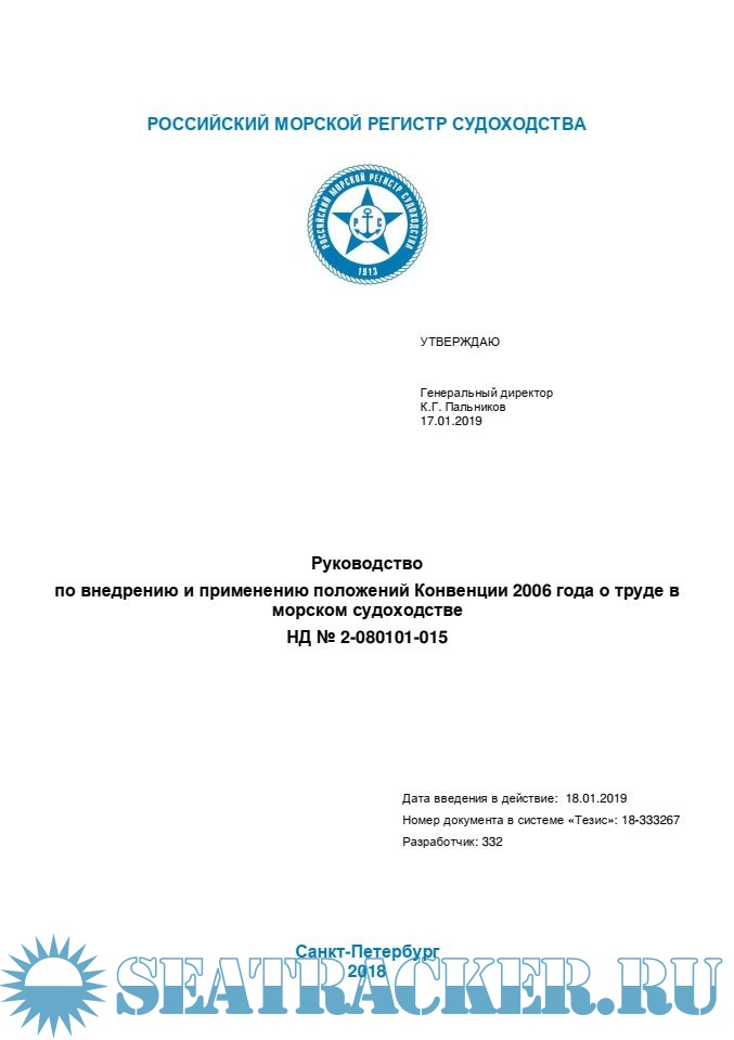 - Руководство по внедрению и применению положений Конвенции 2006 года о труде в морском судоходстве (2-080101-015); - Guidelines on Implementation and Application of the Provisions of the Maritime Labour Convention, 2006 (2-080101-015-E).
