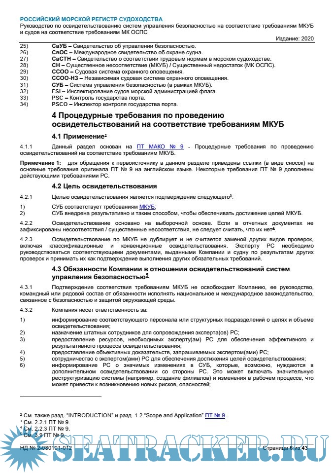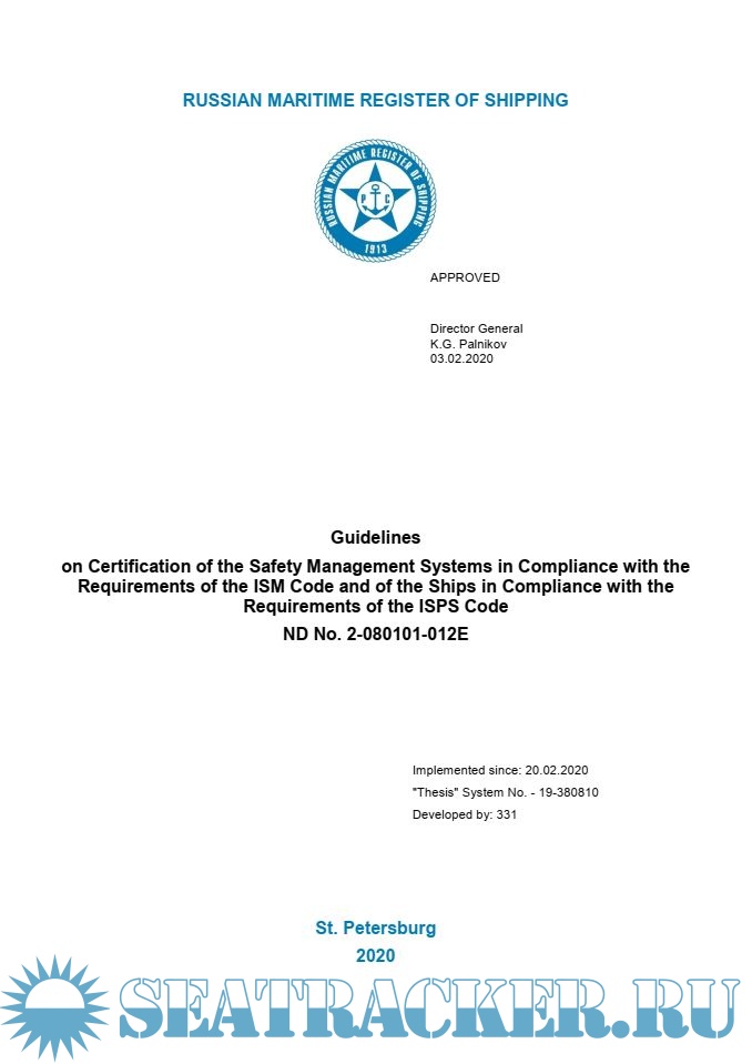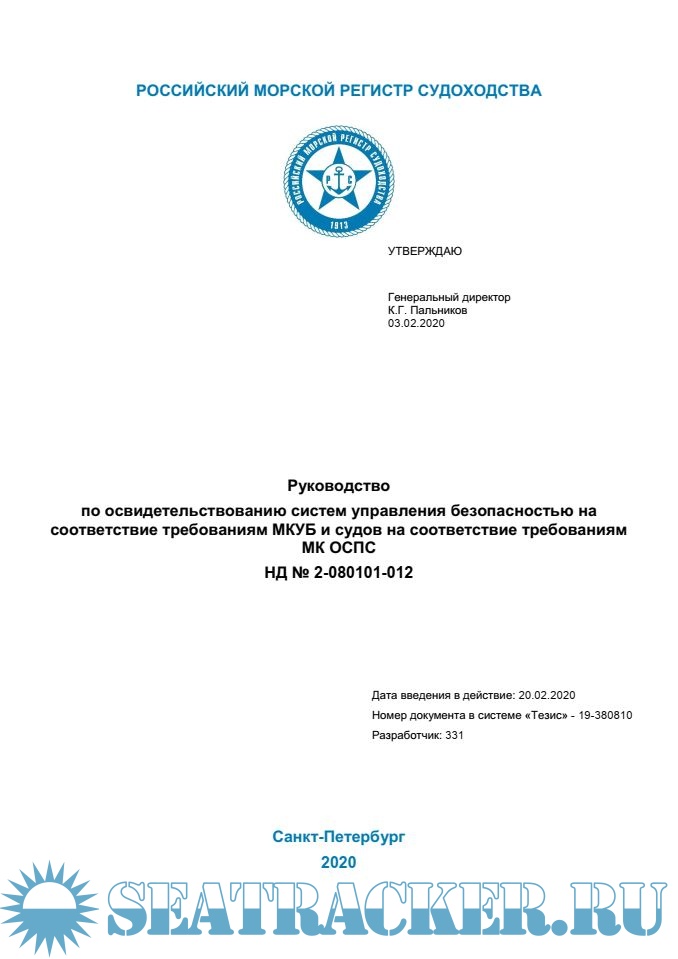 - Руководство по освидетельствованию систем управления безопасностью на соответствие требованиям МКУБ и судов на соответствие требованиям МК ОСПС (2-080101-012);