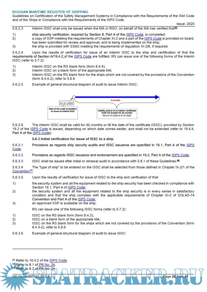 The Guidelines on Certification of the Safety Management Systems (SMS) in Compliance with the Requirements of the International Safety Management (ISM) Code and of the Ships in Compliance with the Requirements of the International Code for the Security of Ships and Port Facilities (ISPS Code), hereinafter referred to as "the Guidelines", determines basic requirements of Company / ships SMS certification (ISM audit), as well as the ship security system (ISPS audit), specified by IMO, IACS and RS.