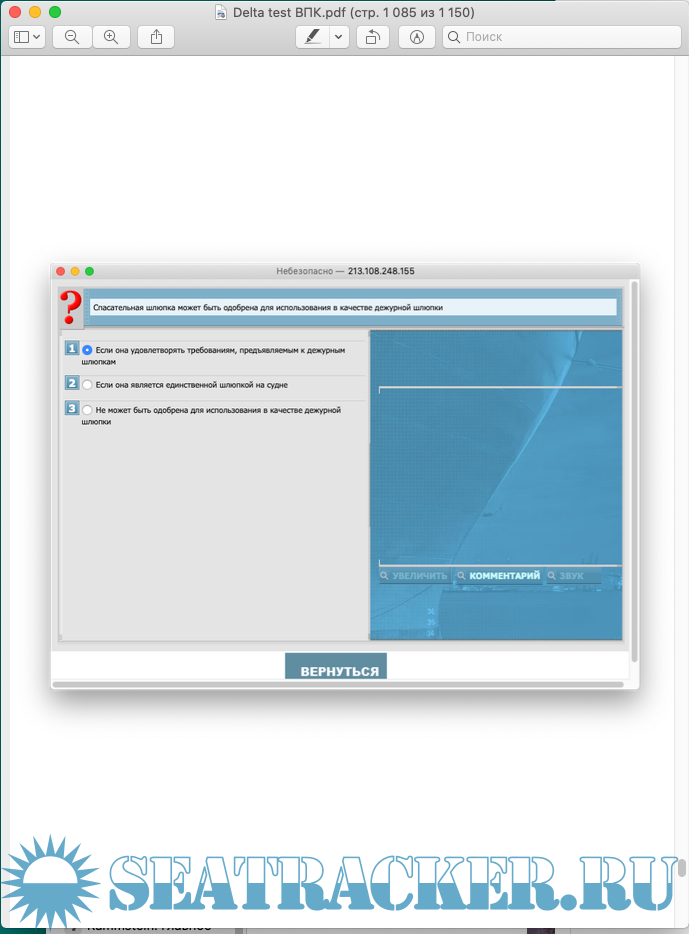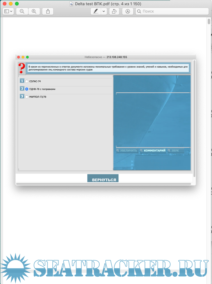 Описание: Проходил платную версию на сайте "Storm training center" летом в 2019 году для последующей сдачи компьютерного теста в капитании " Дельта тест Судоводитель " Вахтенный помощник капитана . Не входят задачи и астрономия.