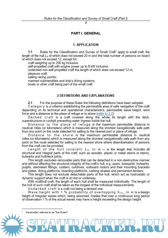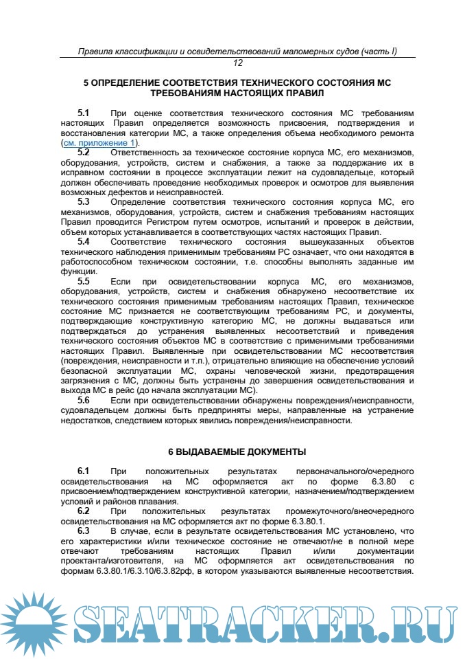 - Правила классификации и освидетельствований маломерных судов; - Rules for the Classification and Survey of Small Craft.