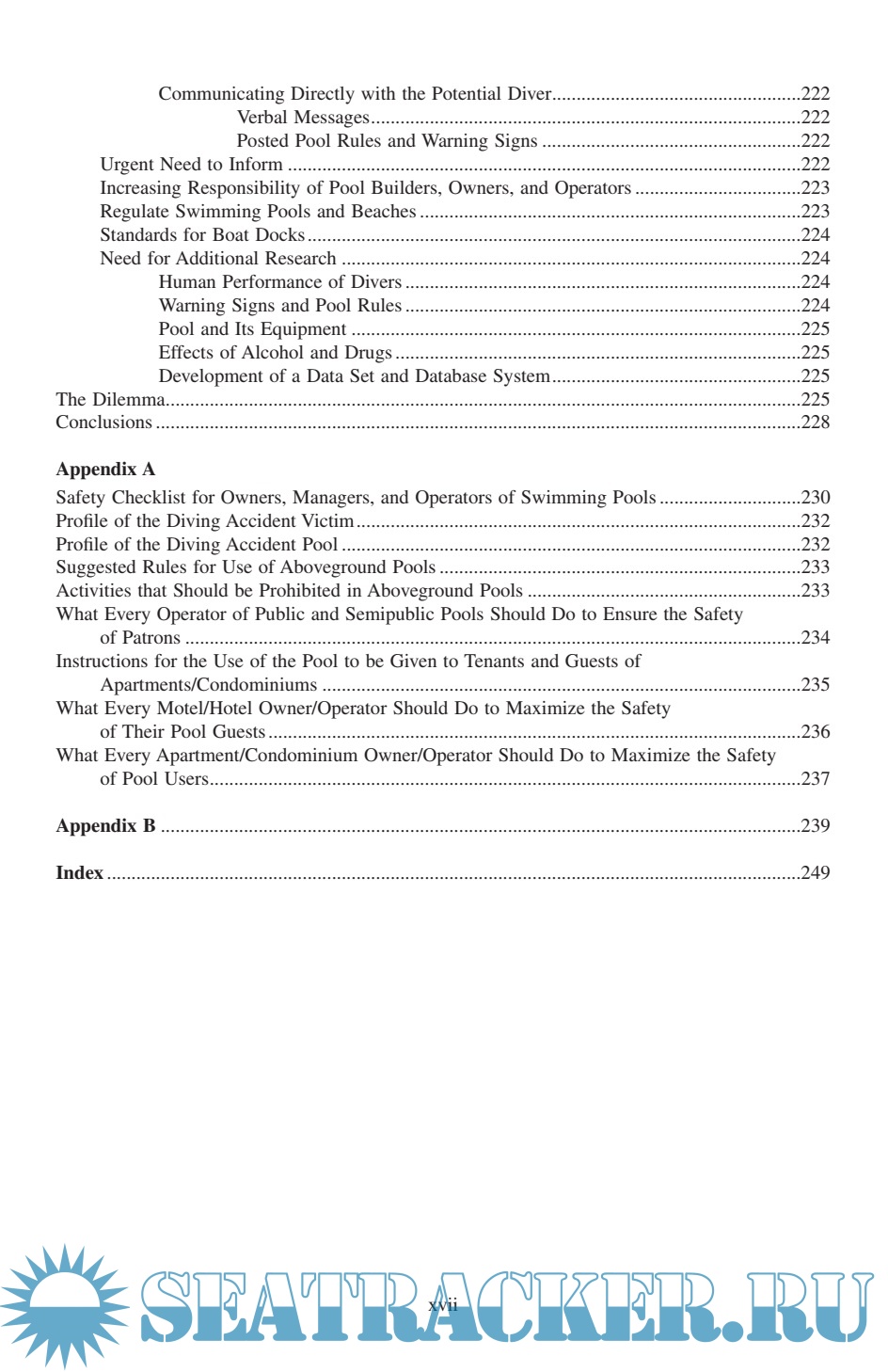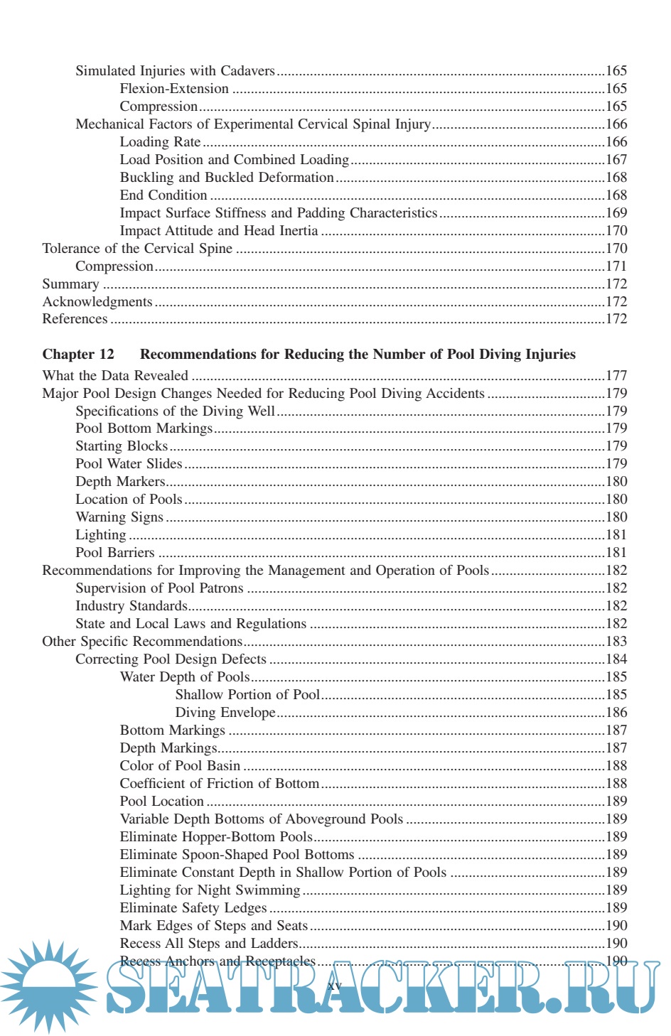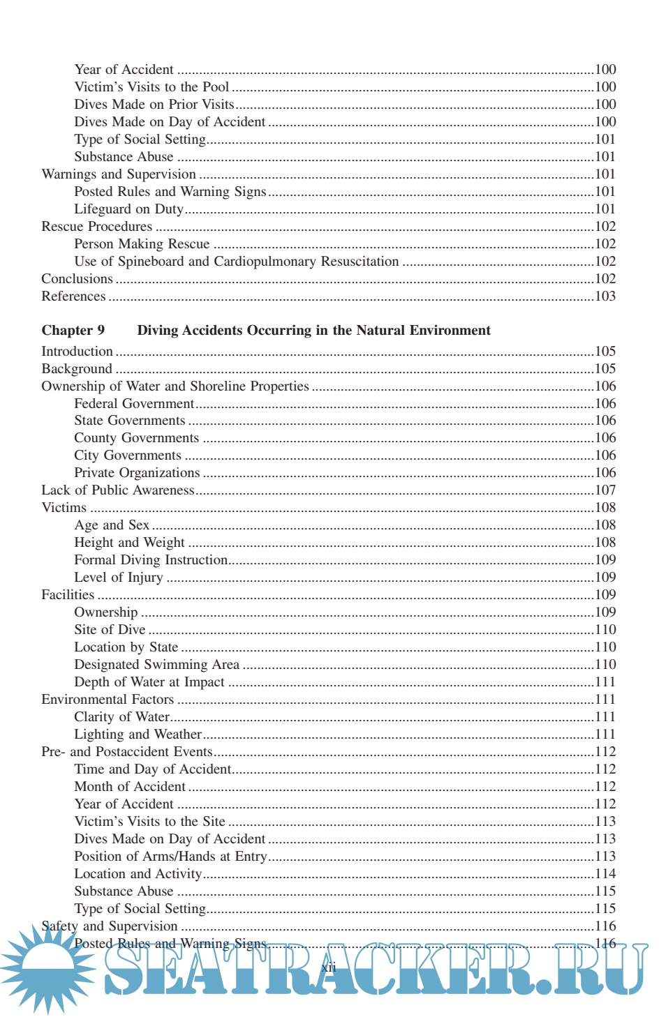 Year: 2000 Language: english Author: Gabrielsen M. Genre: Manual Publisher: CRC Press Edition: 1st ISBN: 0849323703 Format: PDF Quality: Scanned pages Pages count: 273 Description: Diving Injuries: Research Findings and Recommendations for Reducing Catastrophic Injuries represents the most comprehensive study ever done on the problem of spinal cord injuries resulting from diving into water. ng injuries. In it, Dr. Gabrielsen, a renowned expert on the interpretation and presentation of diving-related testimony, discusses injuries sustained in swimming pools, lakes, rivers, and oceans; the laws, standards, and regulations for swimming pool design; and the cost of medical and rehabilitative care for spinal cord injury victims. The book provides a greater understanding of diving safety from all perspectives and is an indispensable reference guide to the safety conscious.