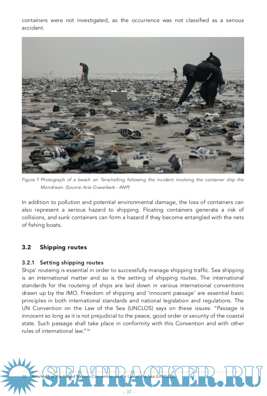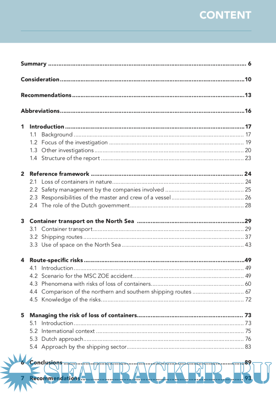 Year: 2020 Language: english Author: J.R.V.A. Dijsselbloem Genre: Methodological guide Publisher: Dutch Safety Board Edition: 1 ISBN: n/a Format: PDF Quality: eBook Pages count: 114 Description: In the night of 1 to 2 January 2019, the MSC ZOE lost 342 containers north of the Wadden Islands, while sailing towards Bremerhaven, Germany, in a stormy northwesterly wind in the Terschelling-German Bight traffic separation scheme (known as the southern shipping route) to the German port of Bremerhaven. The course of events of this very serious marine casualty was investigated by an international investigation team comprising the Panama Maritime Authority (PMA), the German Bundesstelle für Seeunfalluntersuchung (BSU) and the Dutch Safety Board. The report of this investigation considers the causes of the accident and the potential lessons learned. The accident also led the Dutch Safety Board to launch an additional investigation into the route-specific risks on the shipping routes north of the Wadden Islands, which can lead to the loss of containers for large container ships like the MSC ZOE. This report describes the findings of that investigation. The findings from the two investigations into the accident with the MSC ZOE were exchanged and the reports (and recommendations) harmonized. Modelling of the high-risk situation as experienced in the accident scenario of the MSC ZOE The Dutch Safety Board requested the knowledge and research institutes Deltares and MARIN to contribute to the investigation based on their areas of expertise to gain a greater insight into the extent to which the environmental conditions on the shipping routes north of the Wadden Islands contribute to the risk of the loss of containers by large ships. Using measurement data and models, Deltares calculated the current, sea level, wind and wave conditions for reference positions on the southern and northern shipping routes at the moment of the accident with the MSC ZOE. A stormy northwesterly wind on the North Sea like that experienced during the occurrence on average occurs between one and several times a year in the area. In the event of such a northwesterly wind, the waves have both the time and the space to build in height and peak period before they reach the Dutch and German Wadden coastline. In these conditions, the wave direction is at right angles to the southern and northern shipping routes. MARIN made calculations and undertook basin tests with a ship model of a large container ship to gain a greater insight into the ship motions under these conditions. The basin tests revealed that in these conditions, with beam seas, large and wide container ships can be caused to make severe motions. Specifically these ships normally sail with high stability; they are in principle more difficult to upset from their steady state and as a result also return more rapidly to that steady state. This combined investigation has provided a new insight into the circumstances, ship motions and phenomena that occur in the area north of the Wadden Islands.