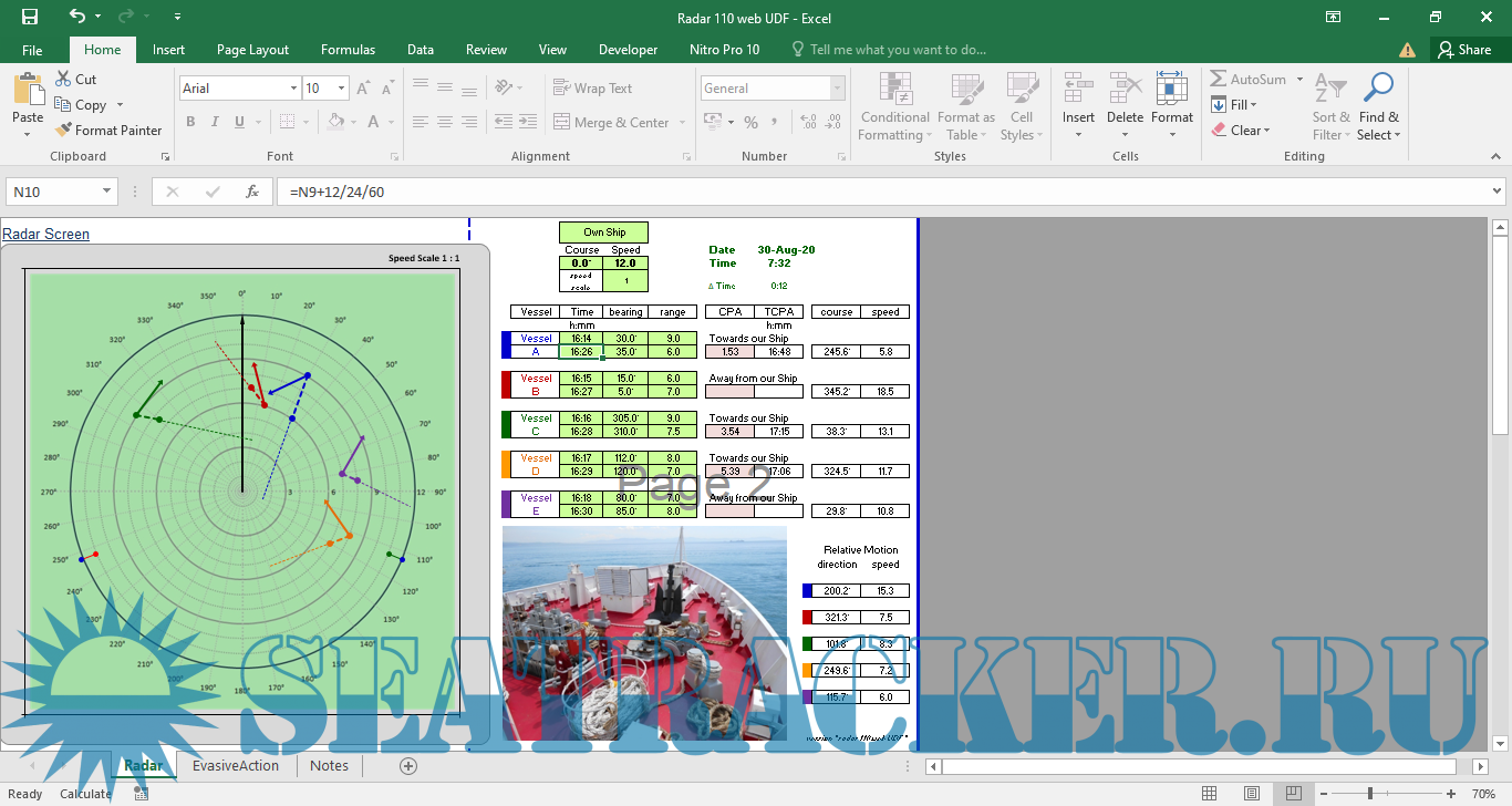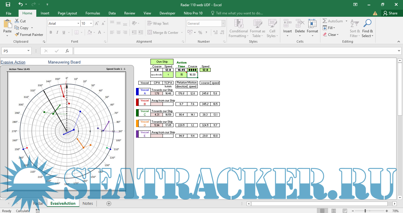 This software allows students, Cadets, Officers and Captains to verify the correct execution of drawings and calculations on the maneuvering board to have all the movement data of the ships in the area. The file allows them to simulate all evasive maneuvers and within few seconds to choose the most suitable maneuver.