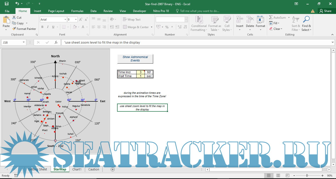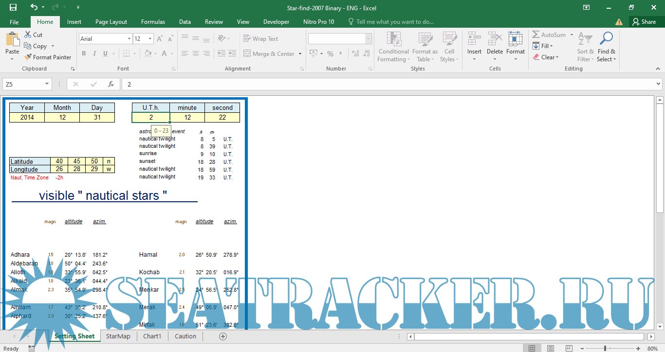 It is necessary to identify the star, with the binoculars of the sextant, when it is not yet possible to the naked eye. To make this happen it is necessary to set the height of the celestial body on the sextant with a certain precision. This can only happen if you are using a Starfinder; this made in excel is of absolute precision.