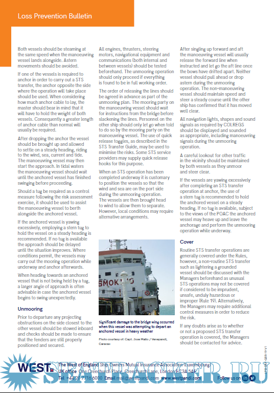 Year: 2020 Language: english Author: West P and I Club Genre: Periodical (magazine) Format: PDF Quality: eBook Pages count: 4 Description: The Club has experienced an increasing number of claims involving contact damage during ship to ship (STS) transfers, mainly during maneuvering operations. Some of the incidents were serious.