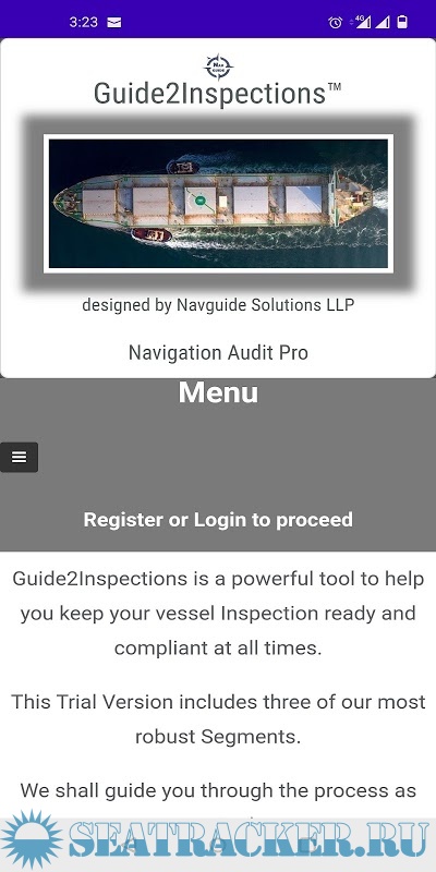 Additional info: Nav Audit Pro created by Navguide Solutions is meant to act as a guide for Bridge auditors, watchkeeping officers and Masters on board. While acting as a guide, it does not claim to take over the responsibility or experience of the Auditor.