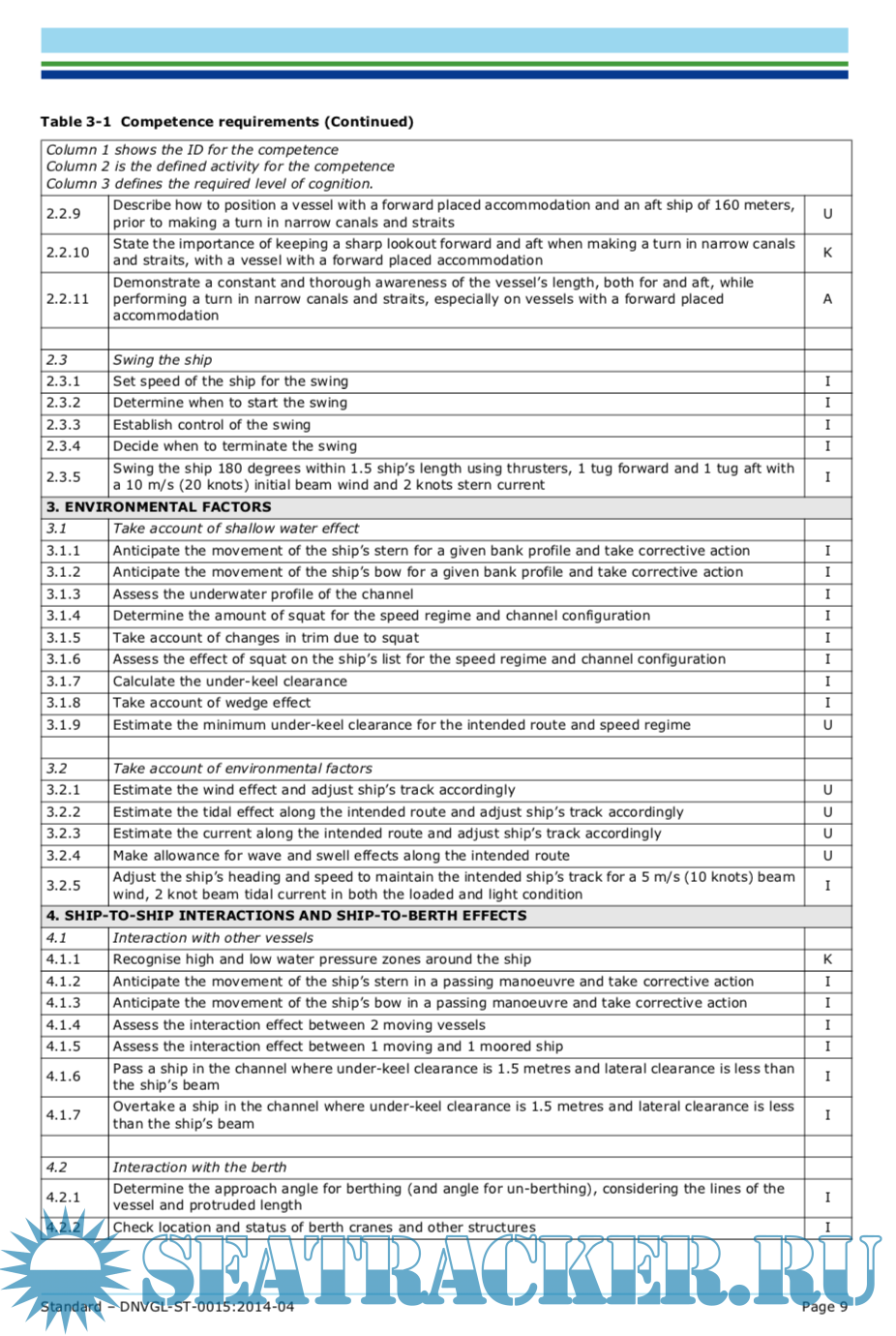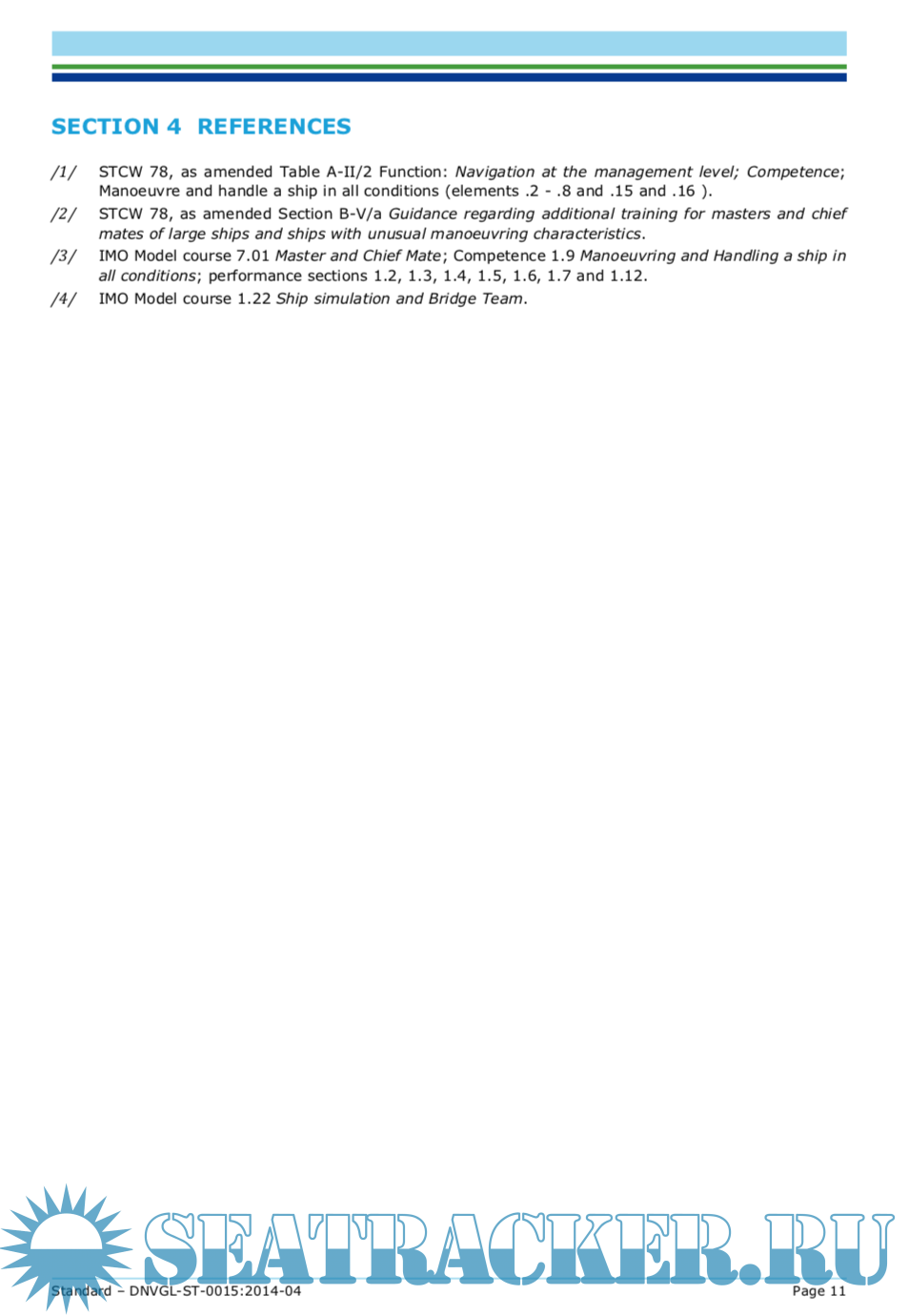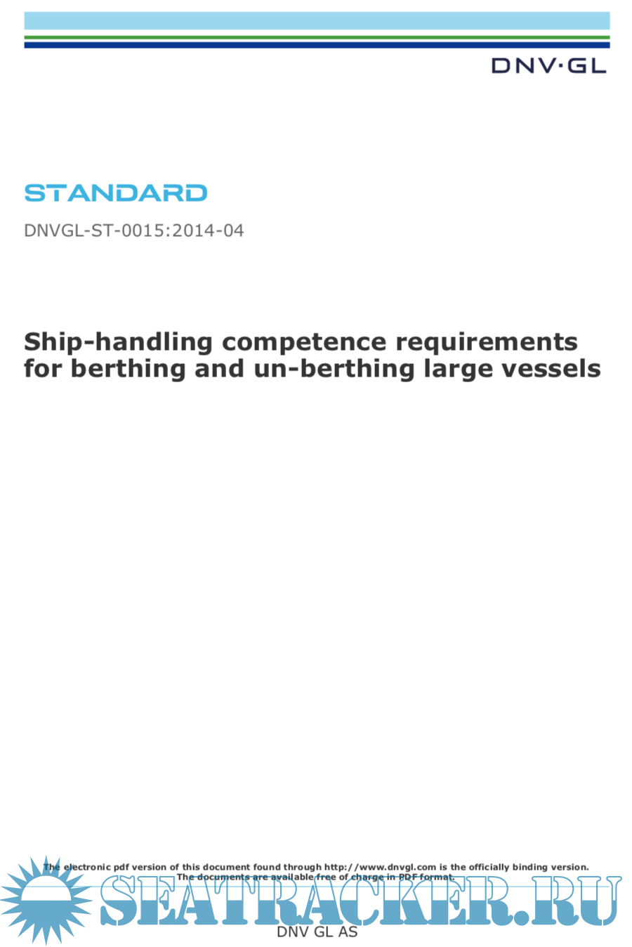 Year: 2014 Language: english Author: DNV GL Genre: Guide Publisher: DNV GL Format: PDF Quality: eBook Pages count: 12 Description: The increasing size of vessels, especially container vessels, poses special challenges for ship’s officers during the operation of berthing or un-berthing. The vessels may be in excess of 400 metres, have fine lines for high speed operation with varying degrees of power availability and a relatively high freeboard. The demand to maintain slow speed control of these large vessels under varying environmental regimes therefore imposes an extra set of skills on the ship’s officer. The need for additional training in manoeuvring large vessels is recognised in STCW-95 section B-V/a /2/. This standard addresses the special competencies needed by Ship’s Officers who are responsible for berthing and un-berthing large vessels with exceptional manoeuvring characteristics. The scope of this standard is “berthing and un-berthing large vessels”. Other ship-handling competences, related to e.g. port approach, anchoring, etc. are not part of the scope.