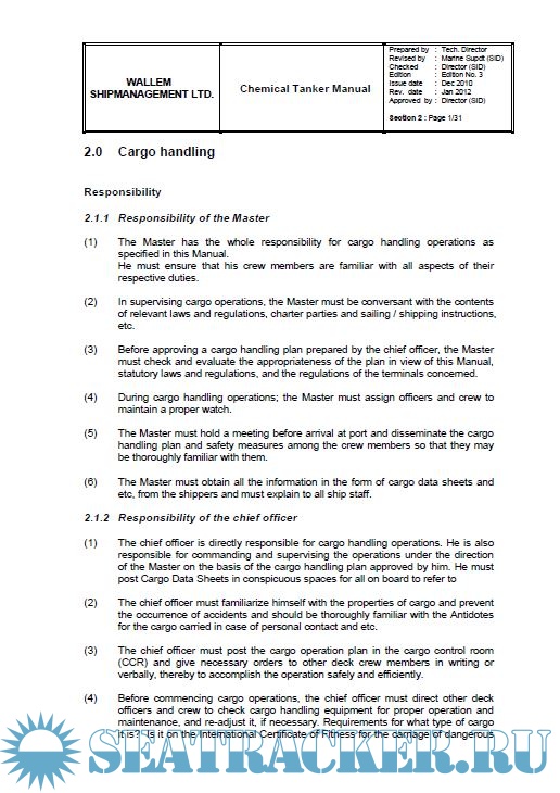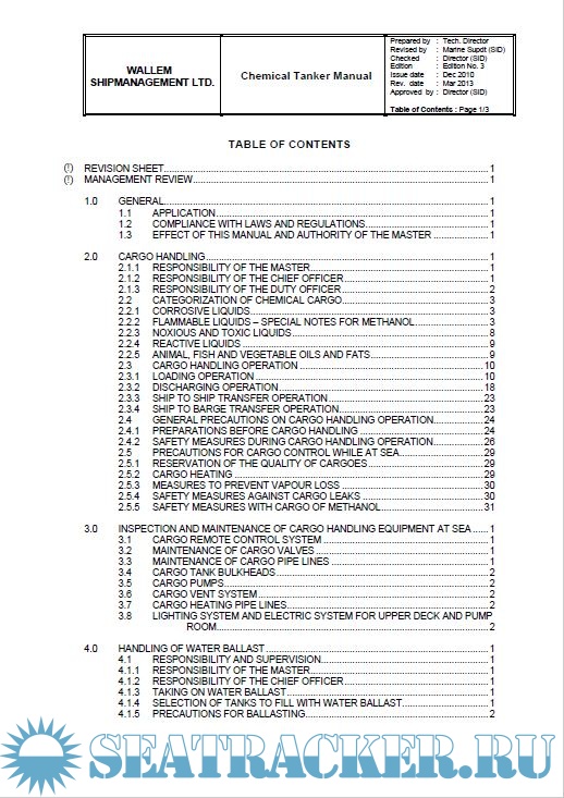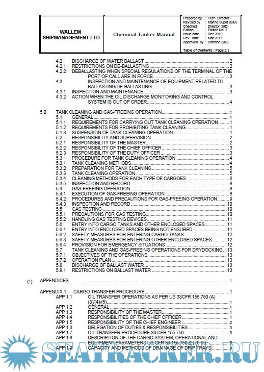 Year: 2013 Language: english Author: Wallem ShipManagement Ltd Genre: Manual Publisher: Wallem ShipManagement Ltd Edition: 3 Format: PDF Quality: eBook Pages count: 126 Description: This Manual is applicable to all chemical tankers under the management of the Company.