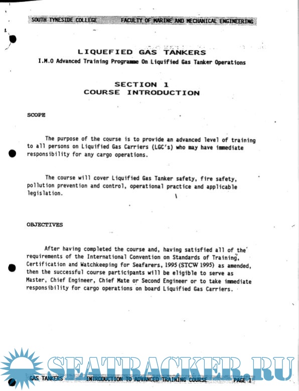 The purpose of the course is to provide an advanced level of training to all persons on Liquefied Gas Carriers (LGC's) who may have immediate respobsibility for any cargo operations.