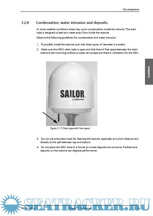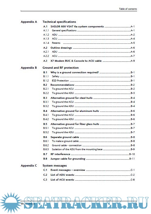 Year: 2018 Language: english Author: Thrane and Thrane Genre: Manual Publisher: Thrane and Thrane Edition: March Format: PDF Quality: eBook Pages count: 251 Description: This is an installation and service manual for the SAILOR 600 VSAT Ka system, intended for installers of the system and service personnel. Personnel installing or servicing the system must be properly trained and authorized by Cobham SATCOM. It is important that you observe all safety requirements listed in the beginning of this manual, and install the system according to the guidelines in this manual.